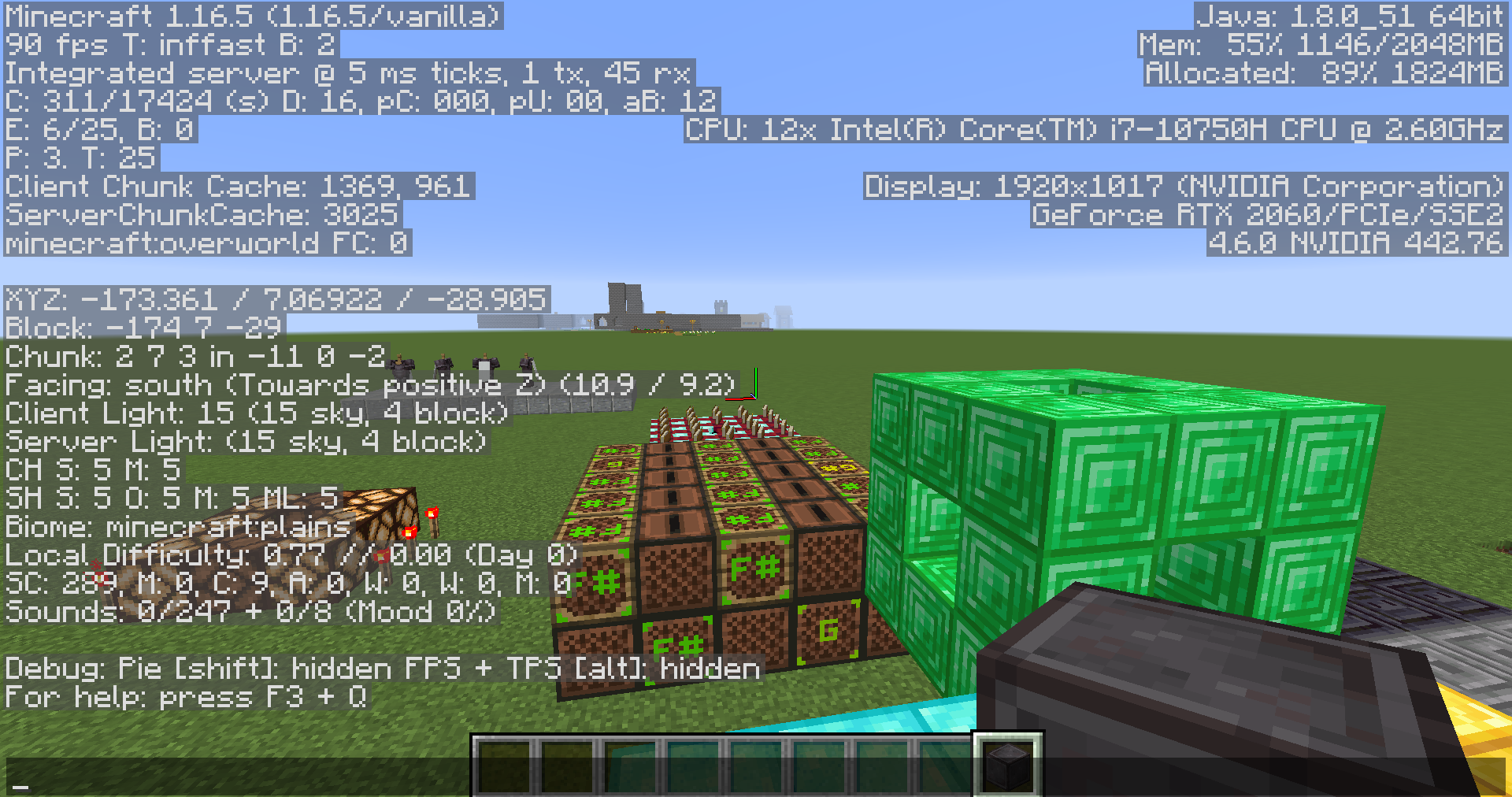 A screenshot of the vanilla game (1.16.5) that uses the correct graphics