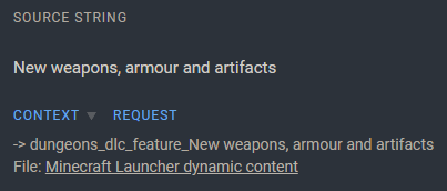 The EN_US string, "New weapons, armour and artifacts", uses the incorrect spelling for the word "armor".