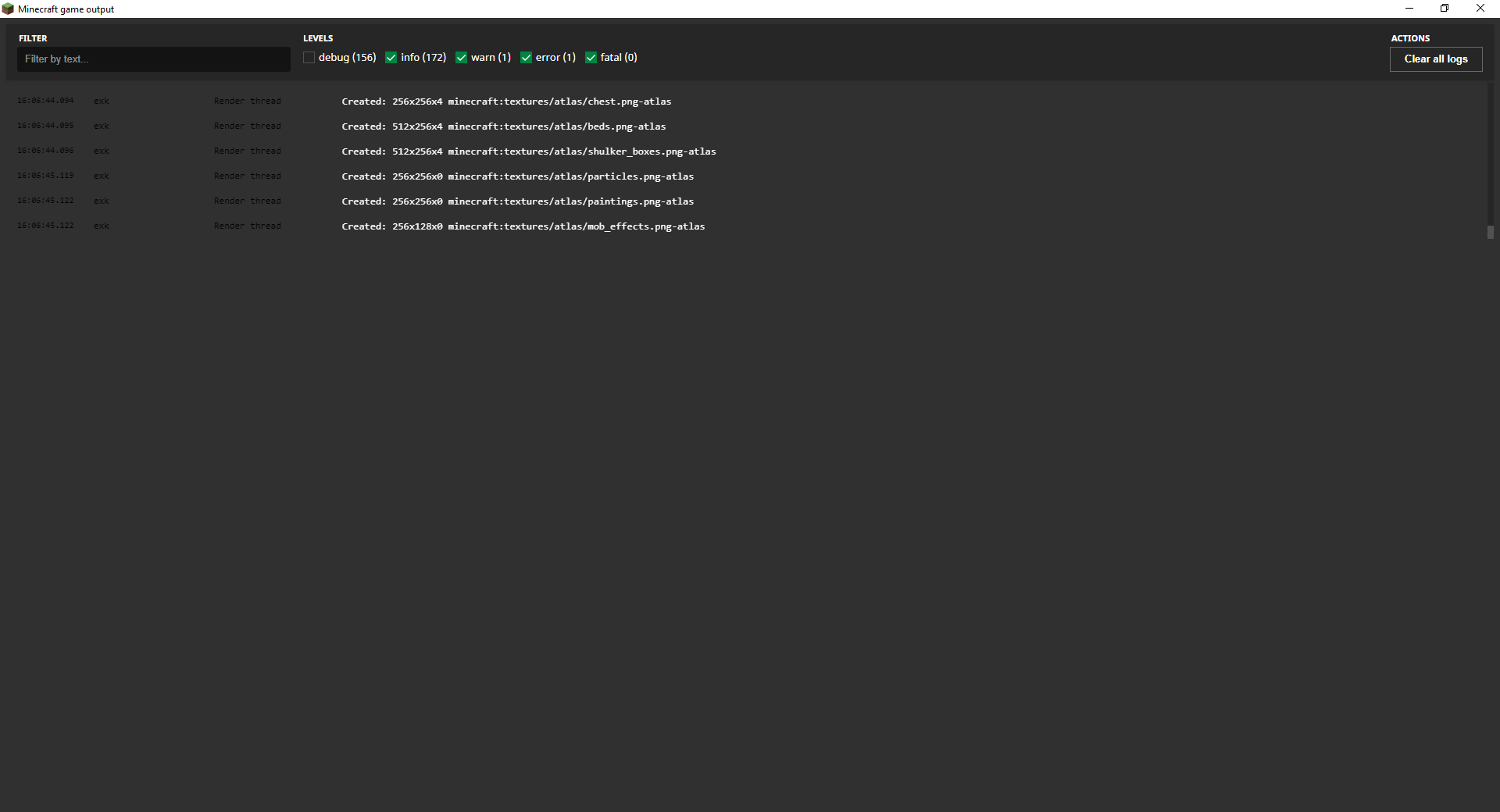 The "Minecraft game output" window that's supposed to display the console output doesn't scale properly and as a result makes reading the game output more difficult than it should be.