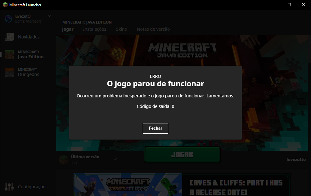 When I try to start Minecraft, either with mod or without mod, this error appears and the game goes back to the launcher screen again.