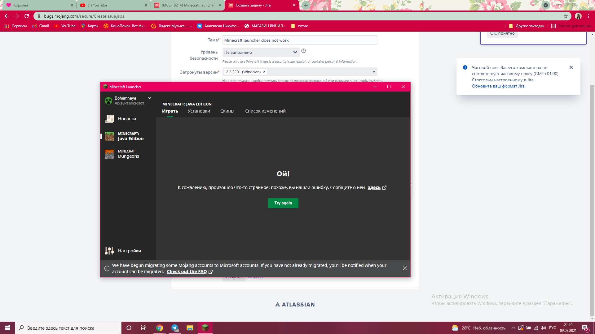When I open the Minecraft Launcher, it says: "Sorry, something went terribly wrong and you encountered a bug. Please file a report here."