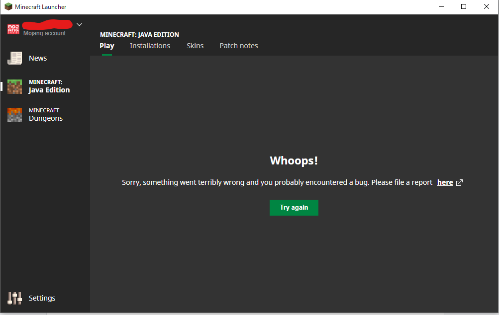 Minecraft Launcher "Play" Tab not working.