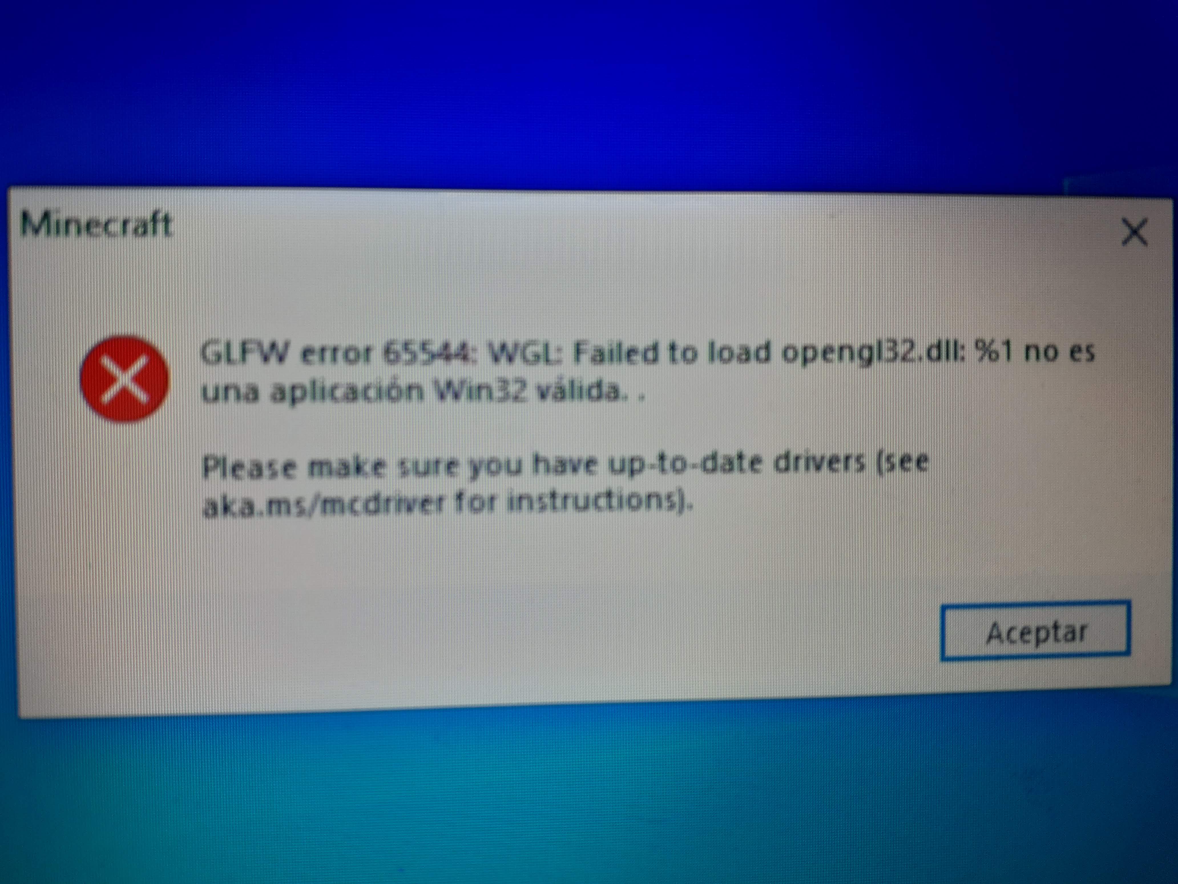 Hola, al entrar al Minecraft TLauncher en la version 2.8 (la version que quiero jugar es 1.16.5) me sale el siguiente error "GLFW error 65544: WGL: Failed to load opengl32.dll: %1 no es una aplicación Win32 válida"
