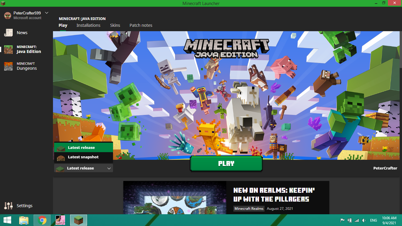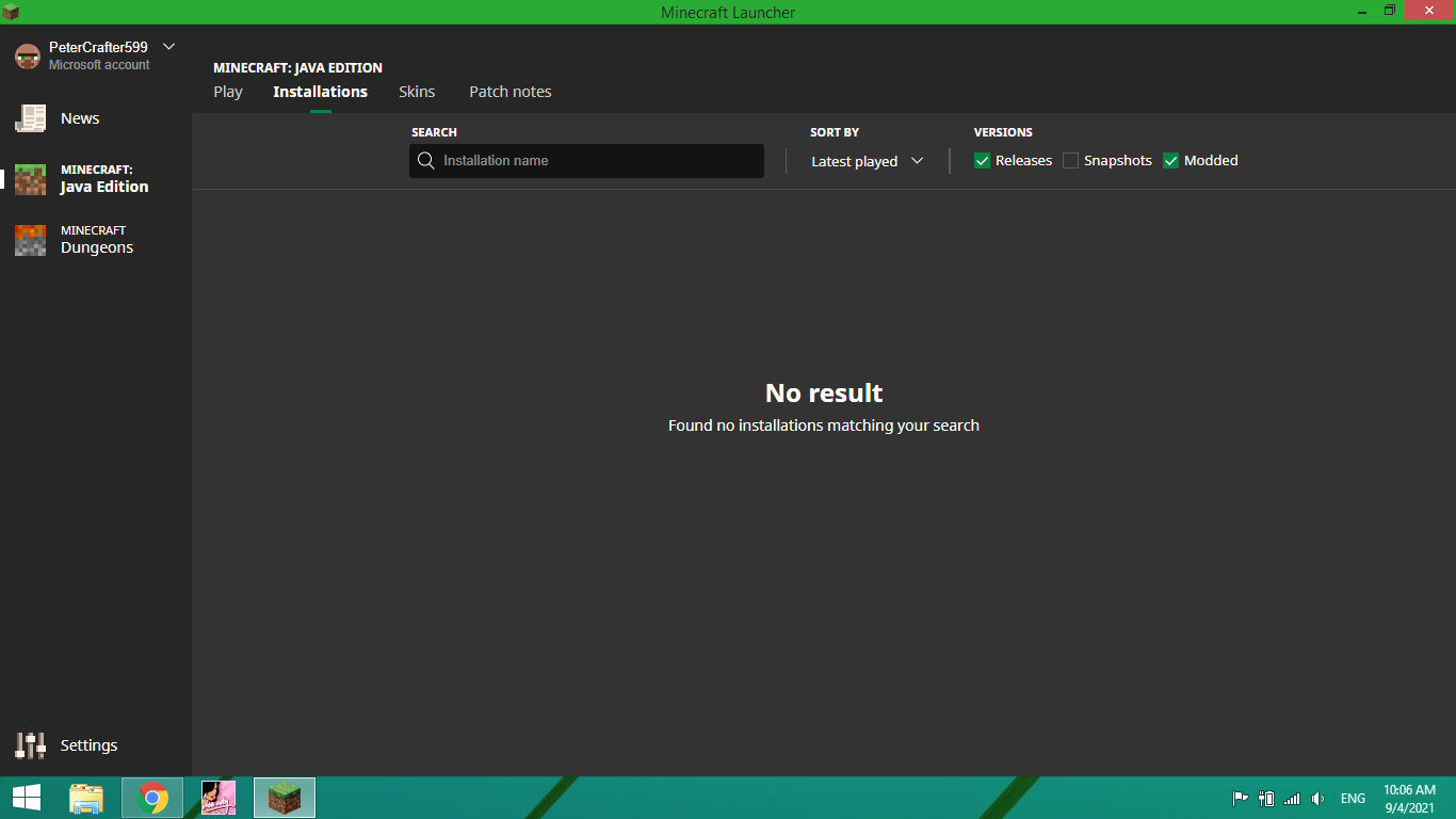 So i reinstalled minecraft(Had to reinstall Windows) and when it finished the update i see that my latest release and latest snapshot don't have any version numbers under them. When i press play it says Sorry, unable to start Minecraft. Please check your configuration. I went to installations and i don't see any releases and there is no button to add a installation