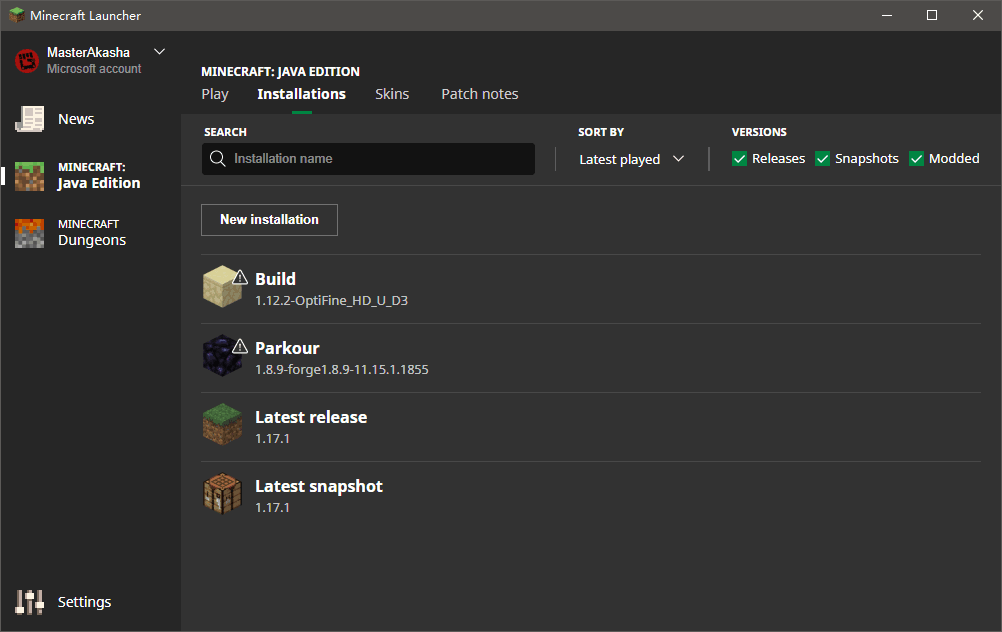There is a "(default)" installation in the Launcher main page,but this "(default)" installation is not displayed in the "Installations" page.