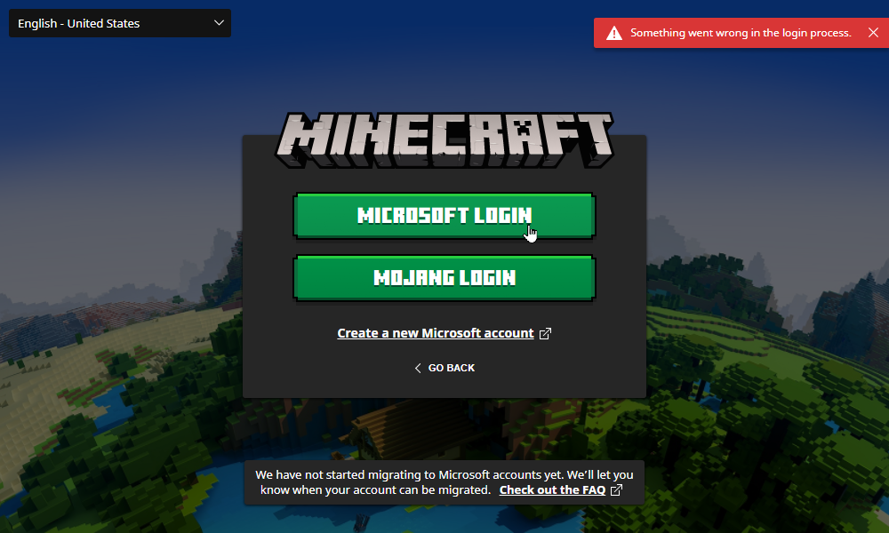 Whenever I try to login to my account on the Minecraft launcher, it always sends a message saying "Something went wrong in the login process" and never lets me proceed to the actual login page.