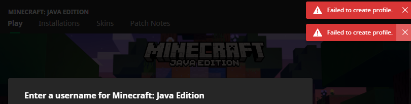 I already have a profile on Java. When I first launch the launcher after powering on my laptop, it’ll show “player” as the name and when I click to play the Java variation the pop up to create a profile occurs. Any name I type in prompts another pop up stating failed to make profile. If I close and reopen the launcher where it said “player” it will now correctly display “Ashtodd”.