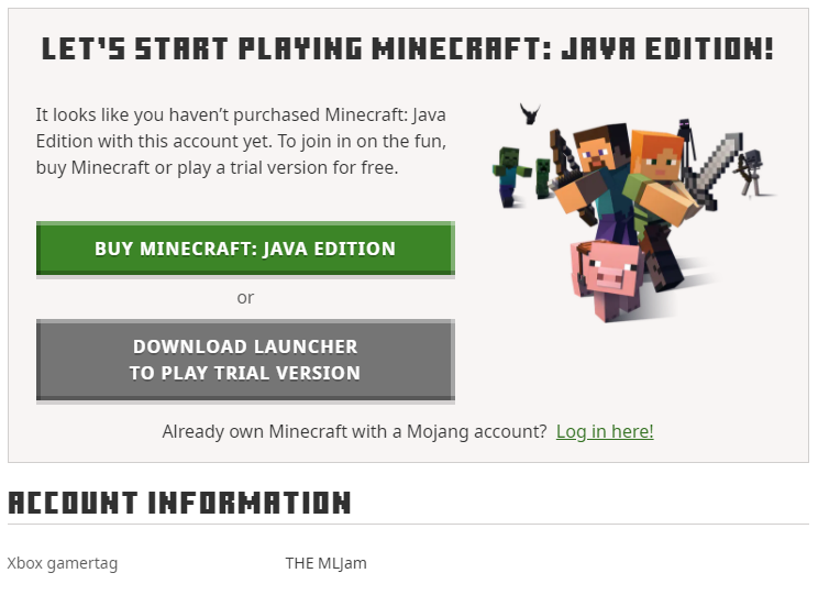 I recently got Minecraft java on my microsoft account, however the website doesn't realise that I have java edition installed and wont let me change my name because of this