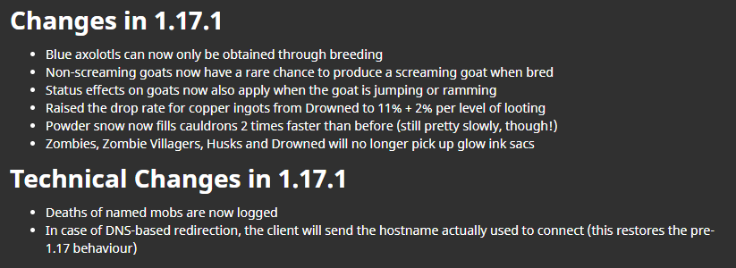 I was looking for "removed herobrine" in the launcher for no reason at all and i find it in every version but not in 1.17 and 1.17.1