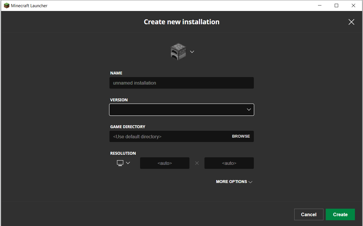 however, when i go to the versions bar (located on the installation tab in "new installation") it will not drop down or let me type in it.