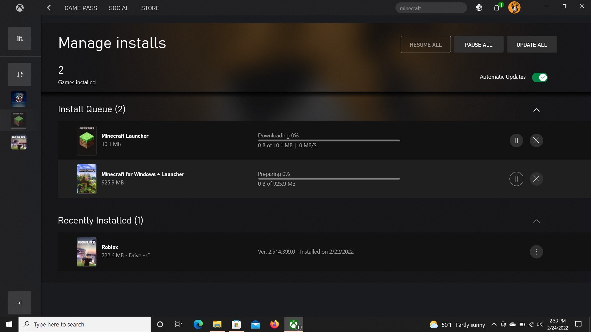 Is your Windows and associated apps (Xbox app, MS store) up-to-date?