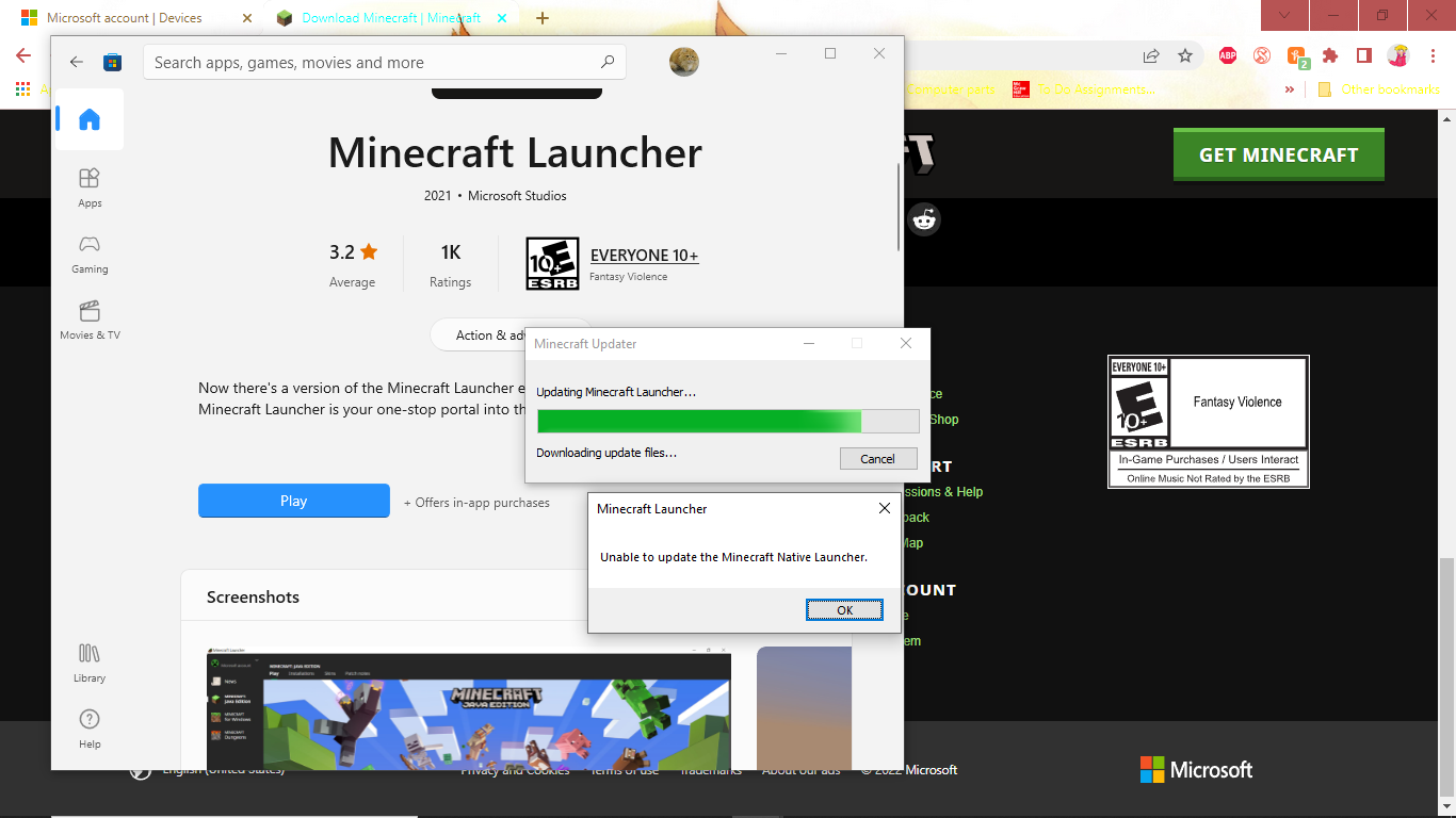 I went to launch minecraft today, however, everytime I try to launch it, it doesn't finish and it always says unable to update Native Browser. I have tried everything I could think of. I've tried uninstalling and reinstalling minecraft, opening with admin., restarting my pc, and even deleting the entire .minecraft folder. Nothing has worked, and I am honestly getting upset with this. I have been trying to fix this for the past 2 hours and nothing has worked. I would really appreciate if I could be told how to actually fix this issue.