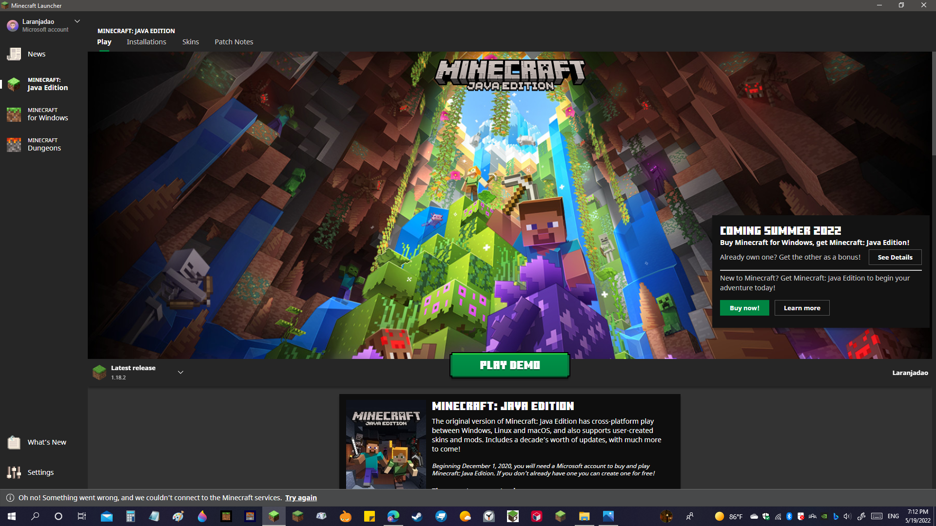 i have fiber internet that is 25 mb down and 10 up and it says play demo for 5 min the says play offline for 5 minutes then it finally says play like it usually does super buggy launcher and extremely bogged down for no apparent reason