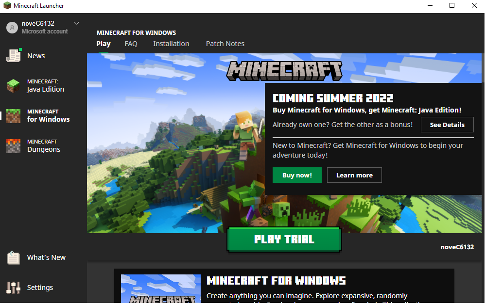 Also, if you bought Java edition of Minecraft, you only possess Java entitlements. Minecraft for Windows is a separate thing.