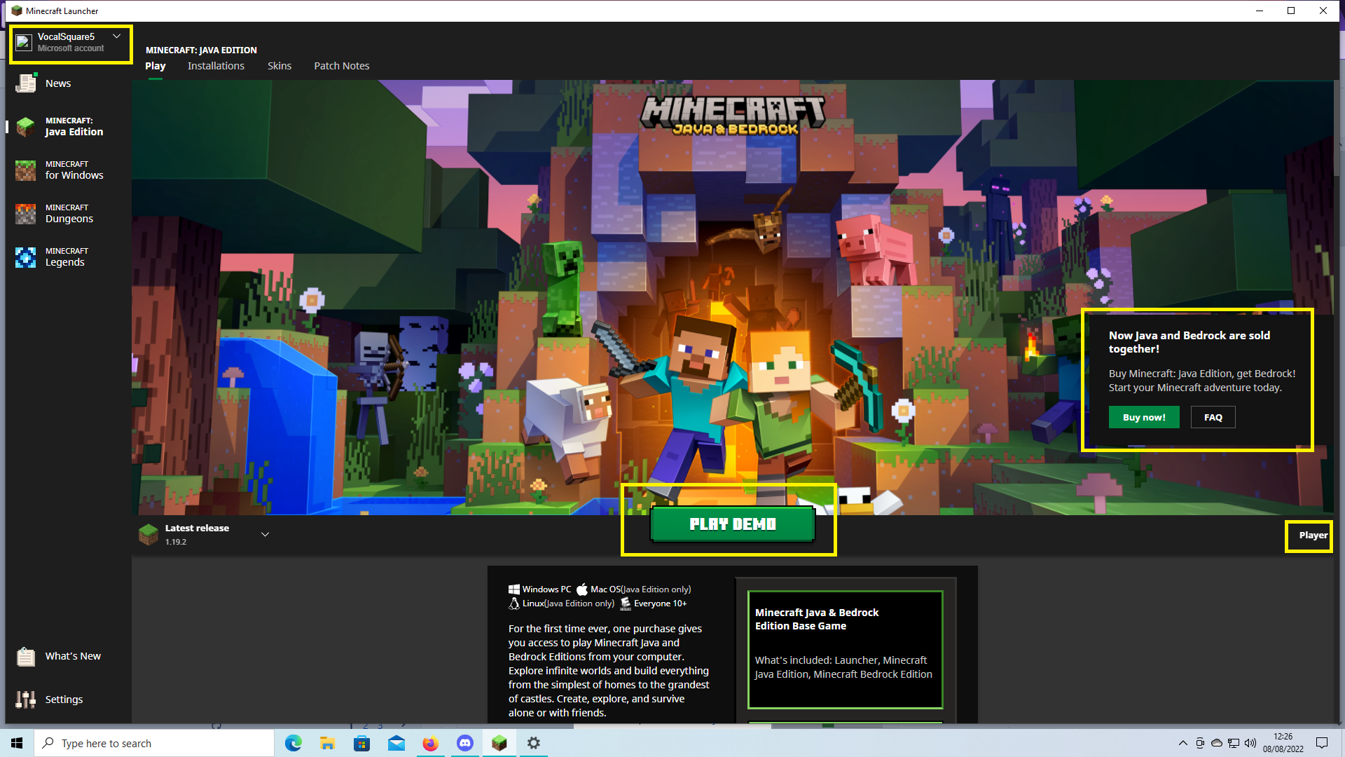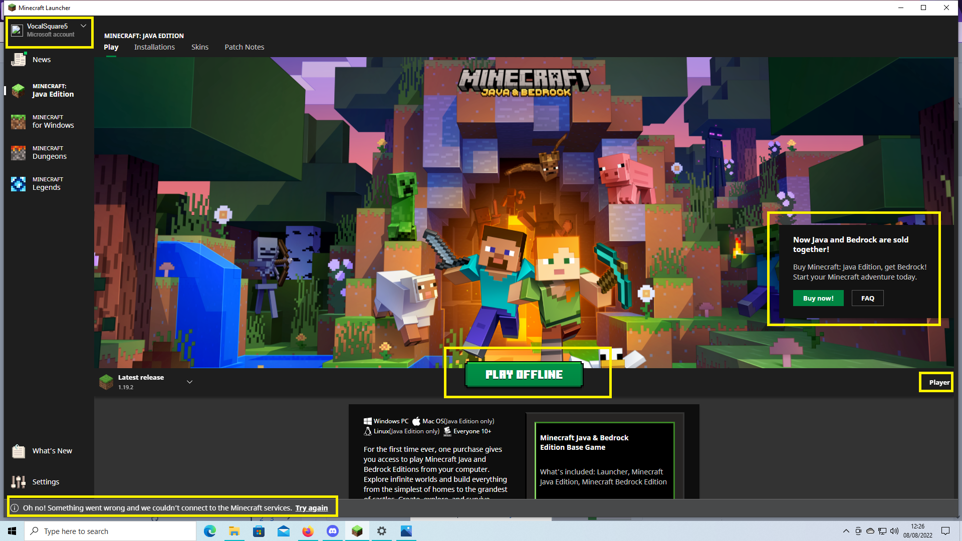 When opening the Windows 10/11 launcher, I am not able to launch either the Java edition or the Bedrock edition.
