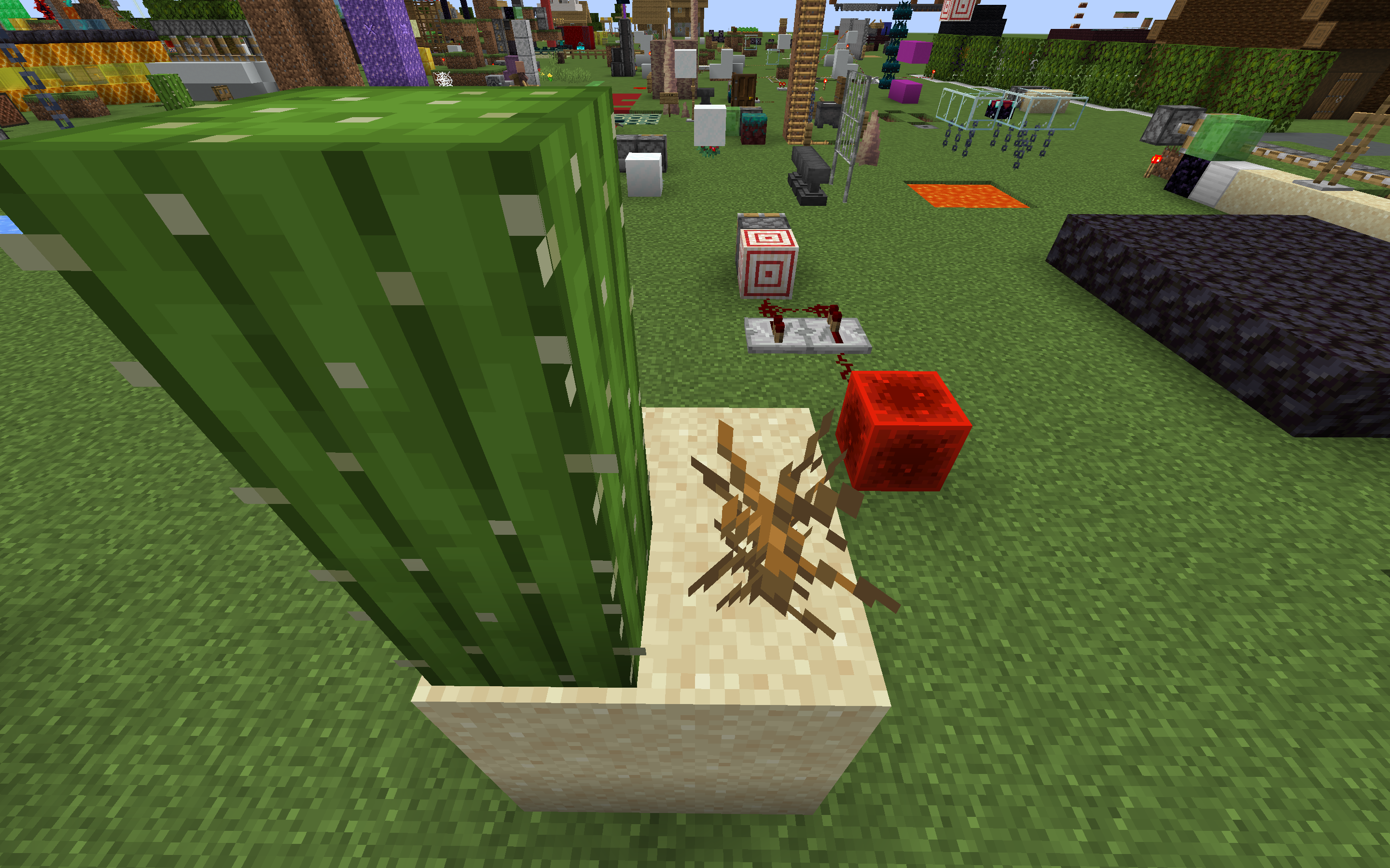 The wild update screen in the launcher where there is a cactus close to a frog a dead bush is next to the cactus and blocks can be near cactuses