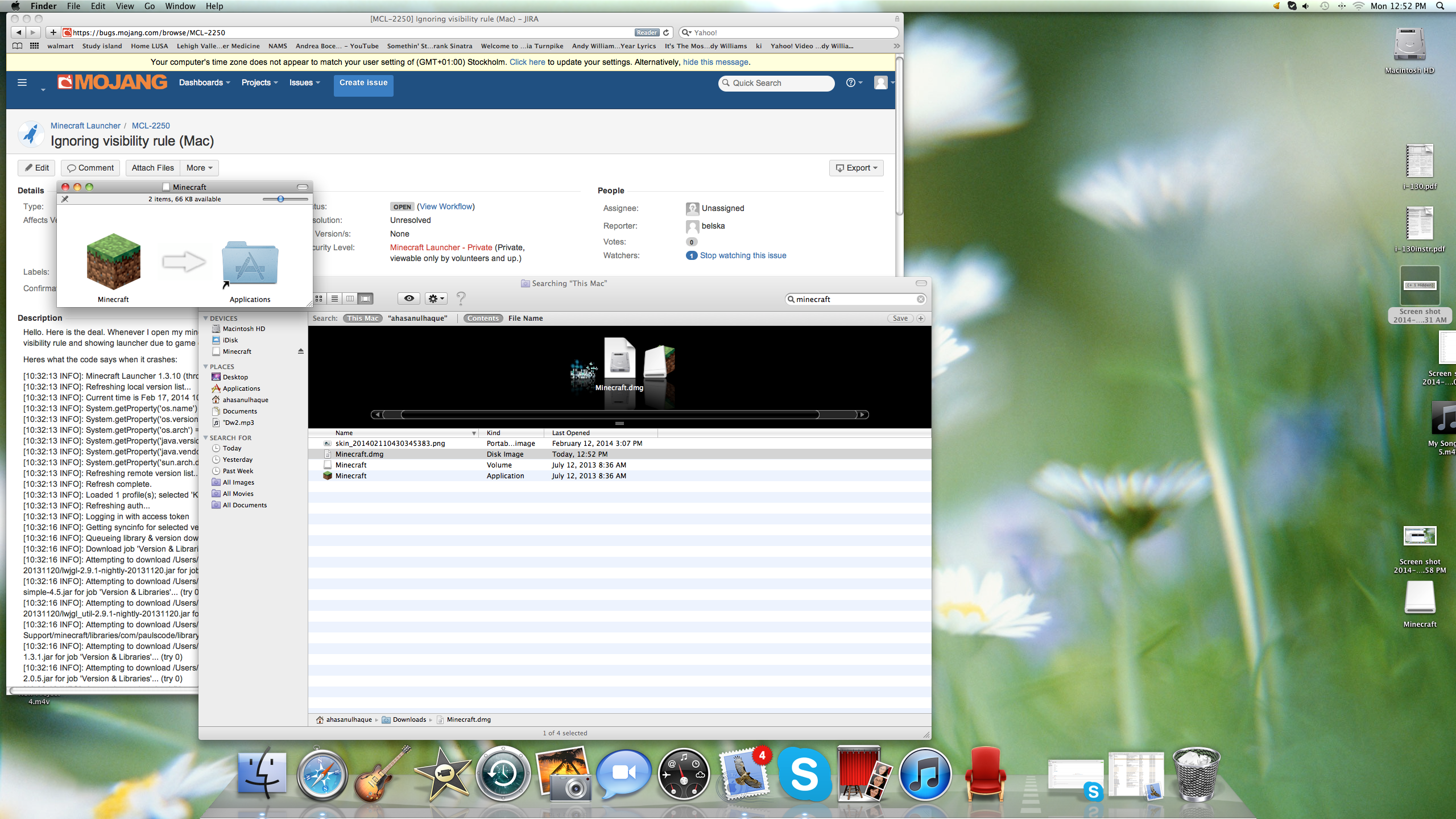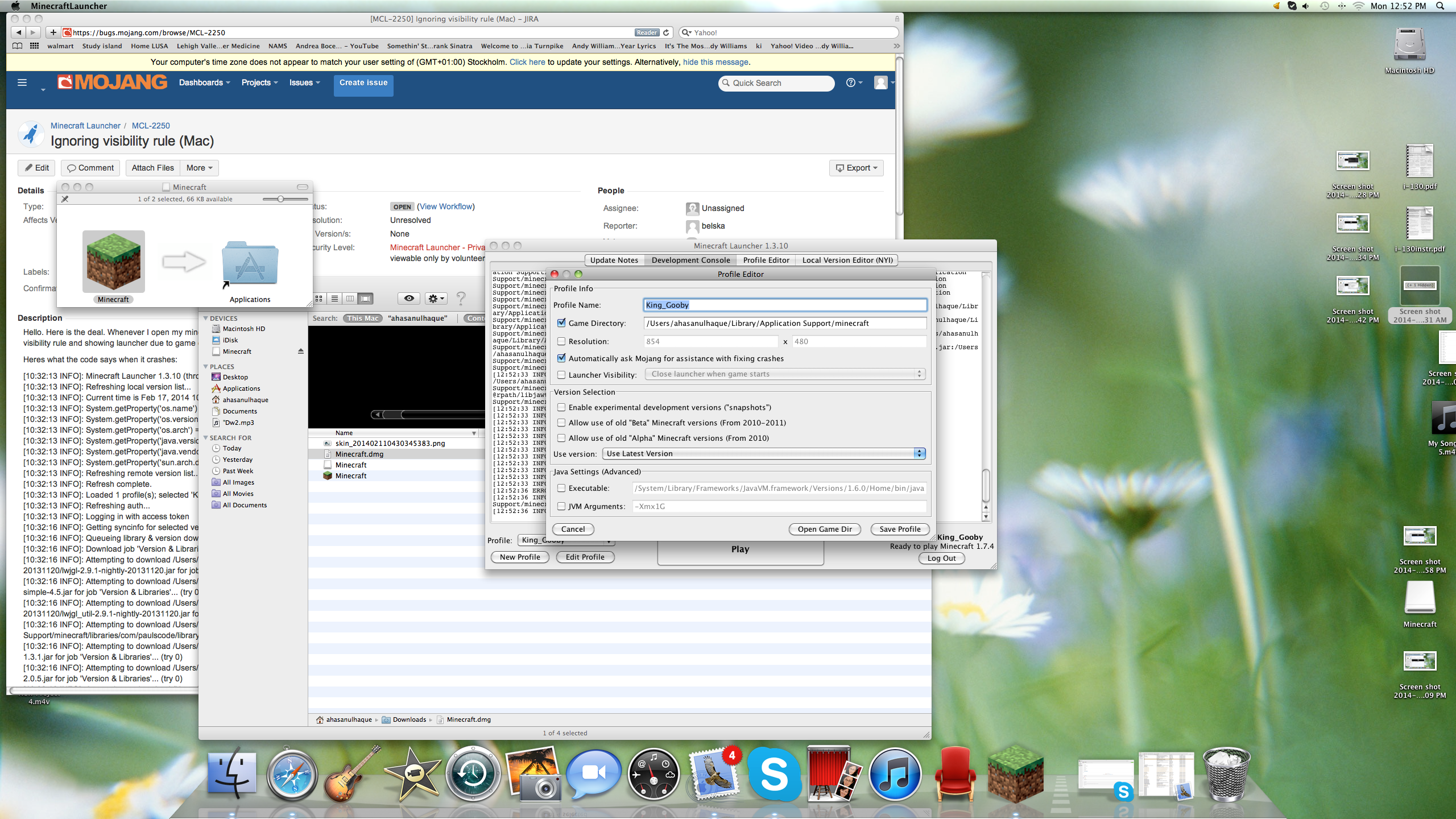 (2. When I select it it shows disc and game. Drag to applications. Before when I played minecraft I had never dragged it into the app folder and it still worked. I dont know if I should do it now?