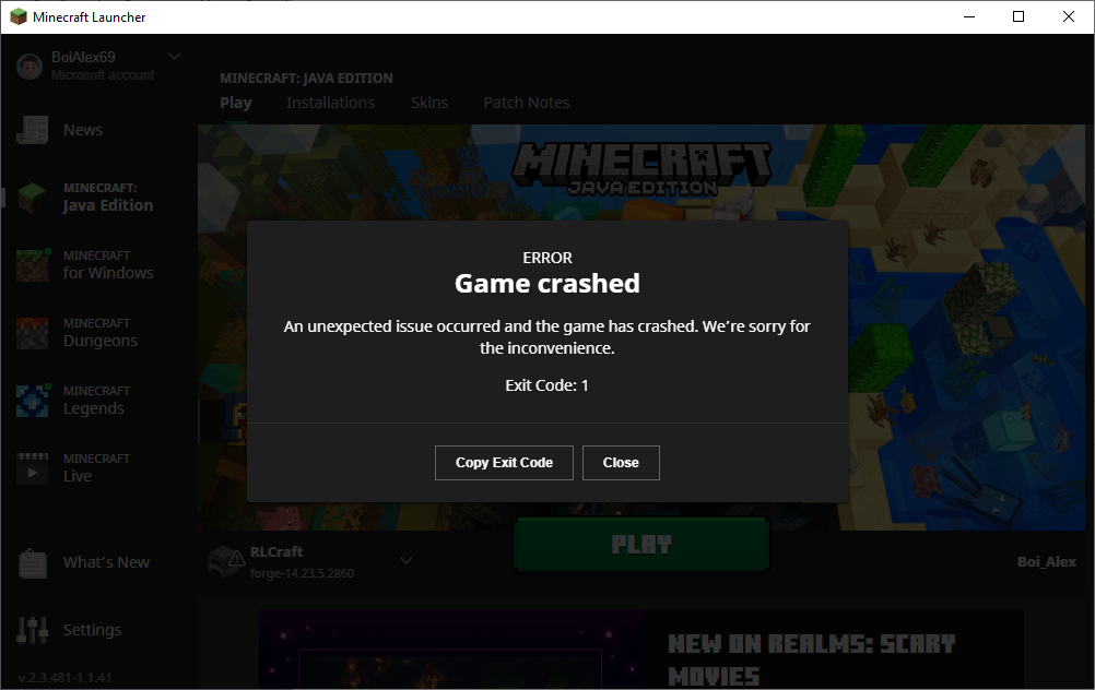 Everytime I click play it crashes. Does not happen on any other modpack other than RL Craft. Have reinstalled the mod pack, have reinstalled Java, have reinstalled Curseforge, have reinstalled the MC Launcher itself. Me and my friend had both suddenly had the same exact issue only when the launcher itself automatically updated.