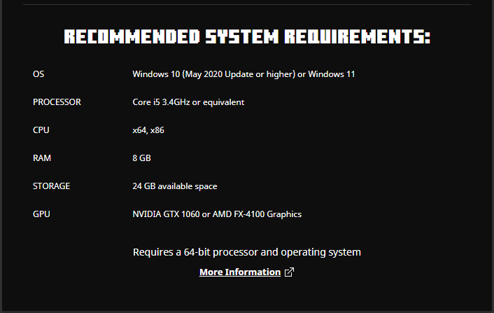 Discovered while testing translations for Minecraft Legends' "Recommended System Requirements" section.