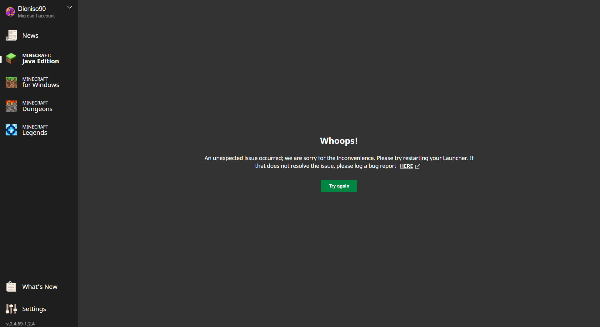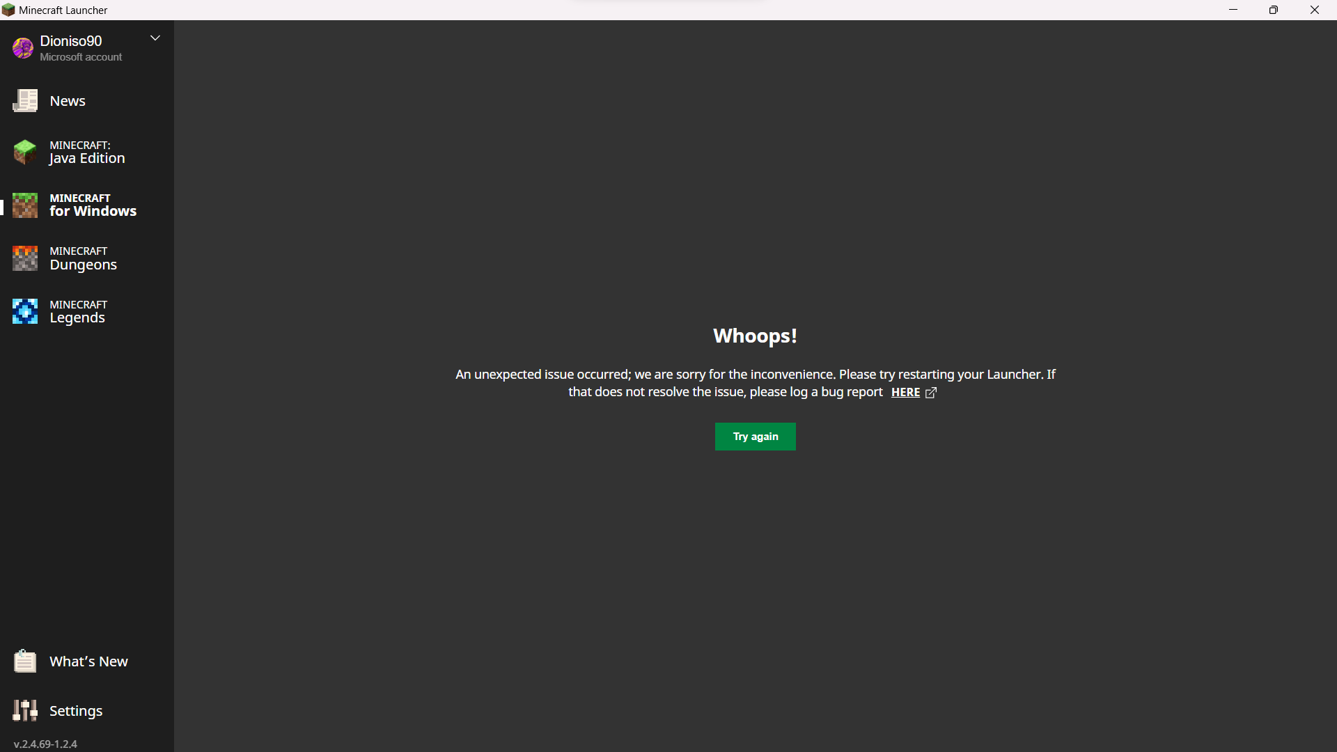 The launcher successfully starts but if I select any game tab I receive the WHOOPS message. I tried to download and reinstall the launcher both from the website and from the microsoft store, I checked that the account in the launcher and in the store are the same and tried to run it as admin, nothing works. I'm on windows 11. The news tab works flawlessly.