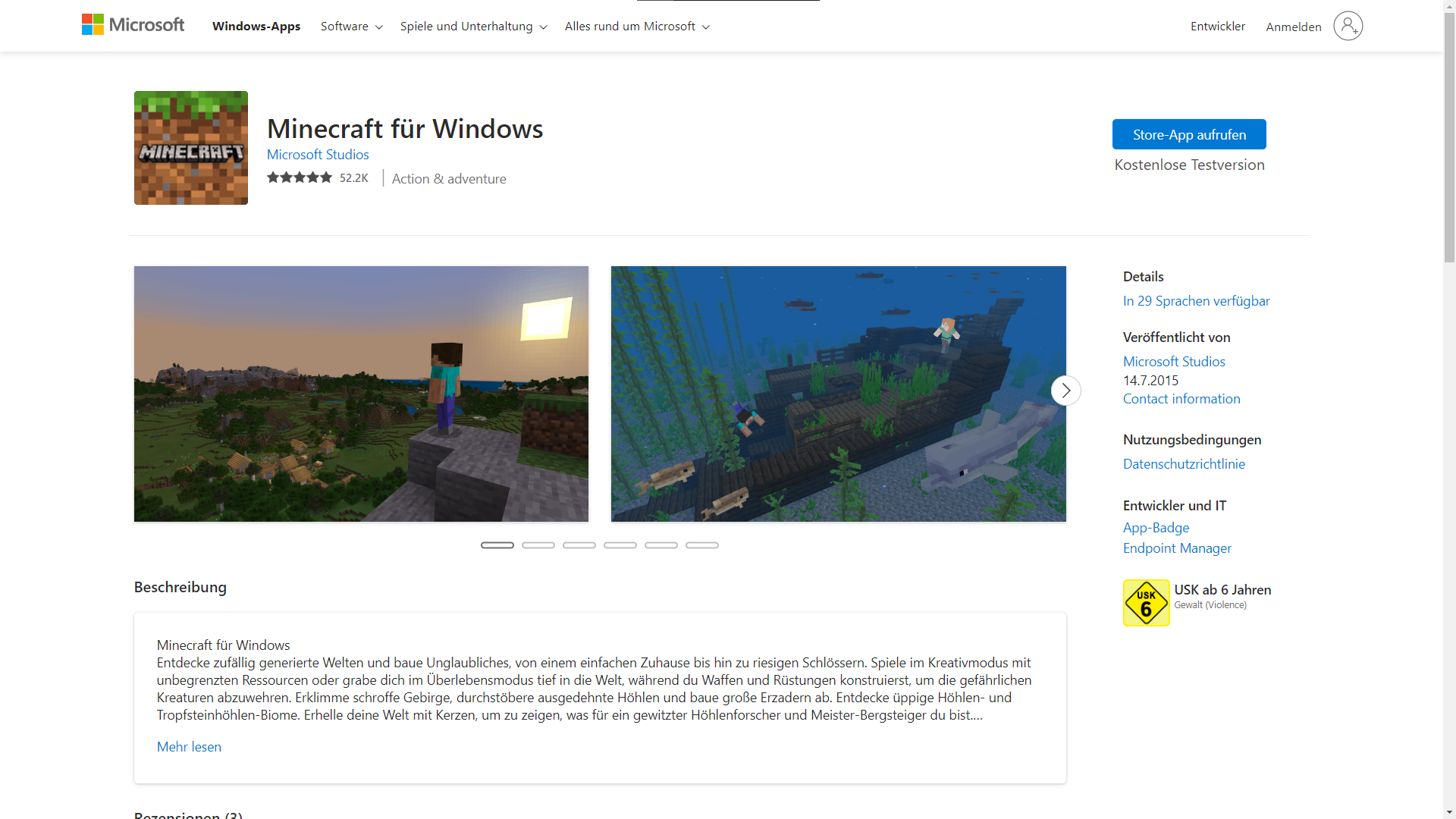 Observe the "Minecraft for Windows" page.