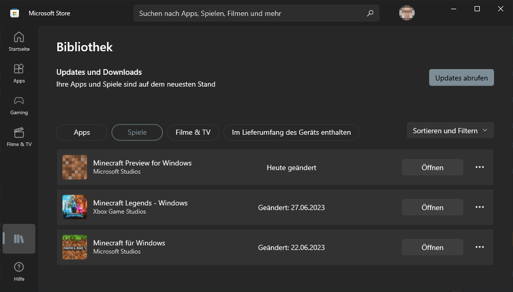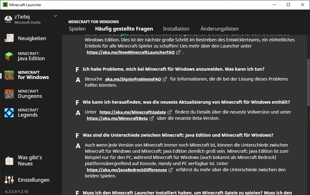The "for" in "Minecraft for Windows" is untranslatable, resulting in an inconsistency with the MS Store (https://apps.microsoft.com/store/detail/minecraft-f%C3%BCr-windows/9NBLGGH2JHXJ), Xbox App, and Microsoft websites where it's translated.