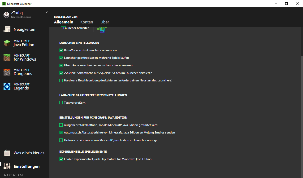 → ❌ Regardless of the language selected, "Enable experimental Quick Play feature for Minecraft: Java Edition" remains in English.