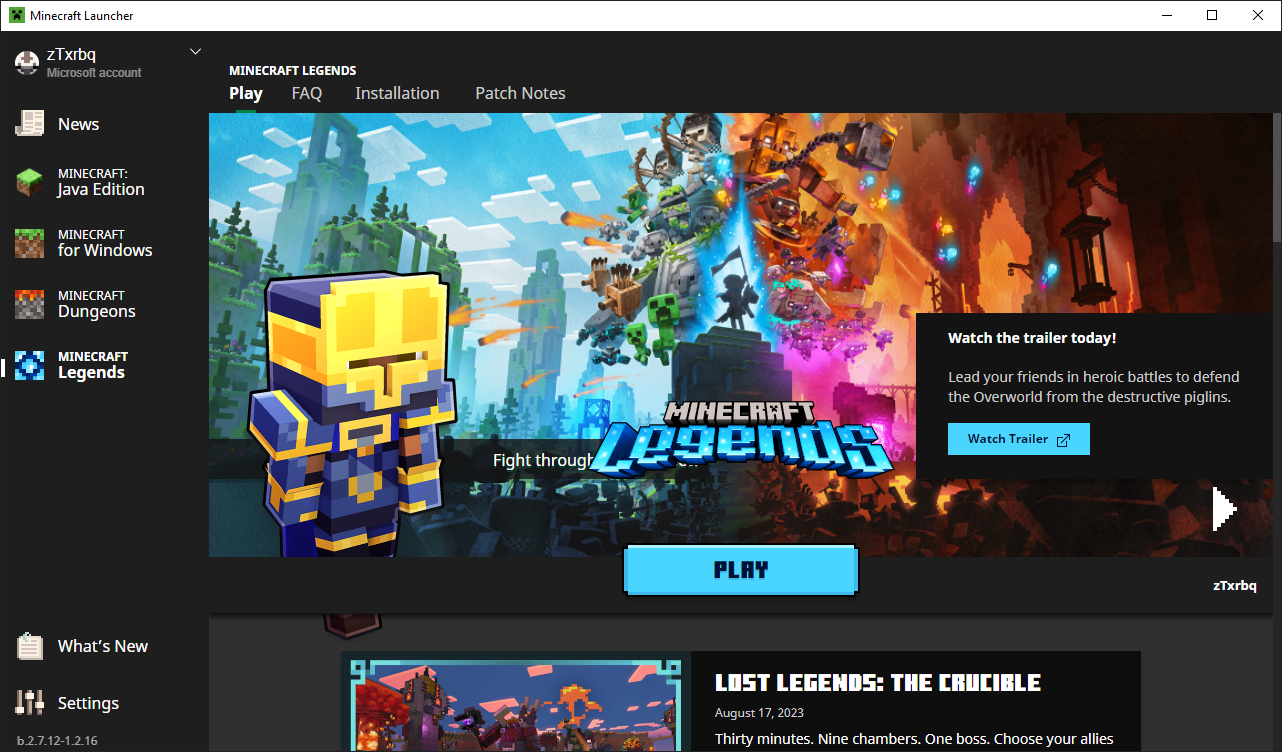 The Minecraft Legends promotional content prompt icon (knight-like figure) is too large.