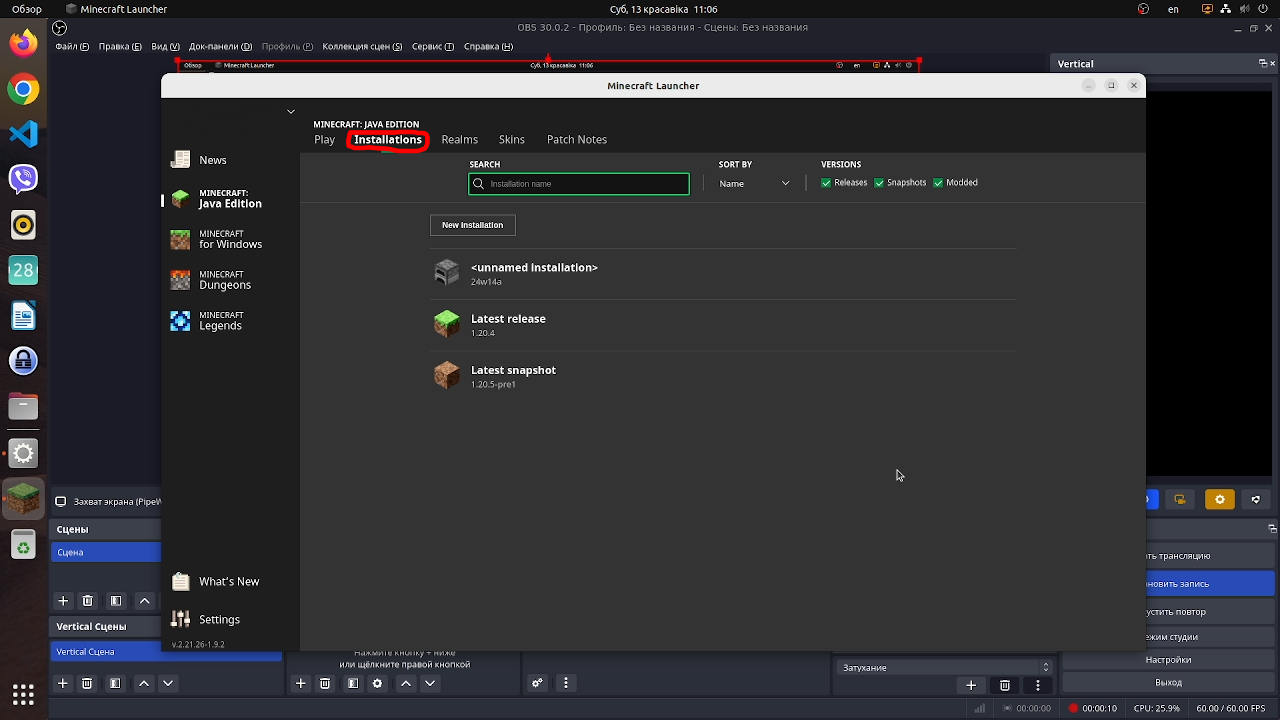 6• after you finish, you should be able to navigate to Minecraft Java to Installations and download the Version you want to try out