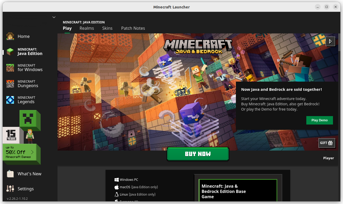 After the v2.26.2 update demo mode users can no longer access "Installation" tab in Minecraft: Java Edition tab, which means you can no longer switch between versions or change the amount of memory Minecraft can access and etc before buying the game.