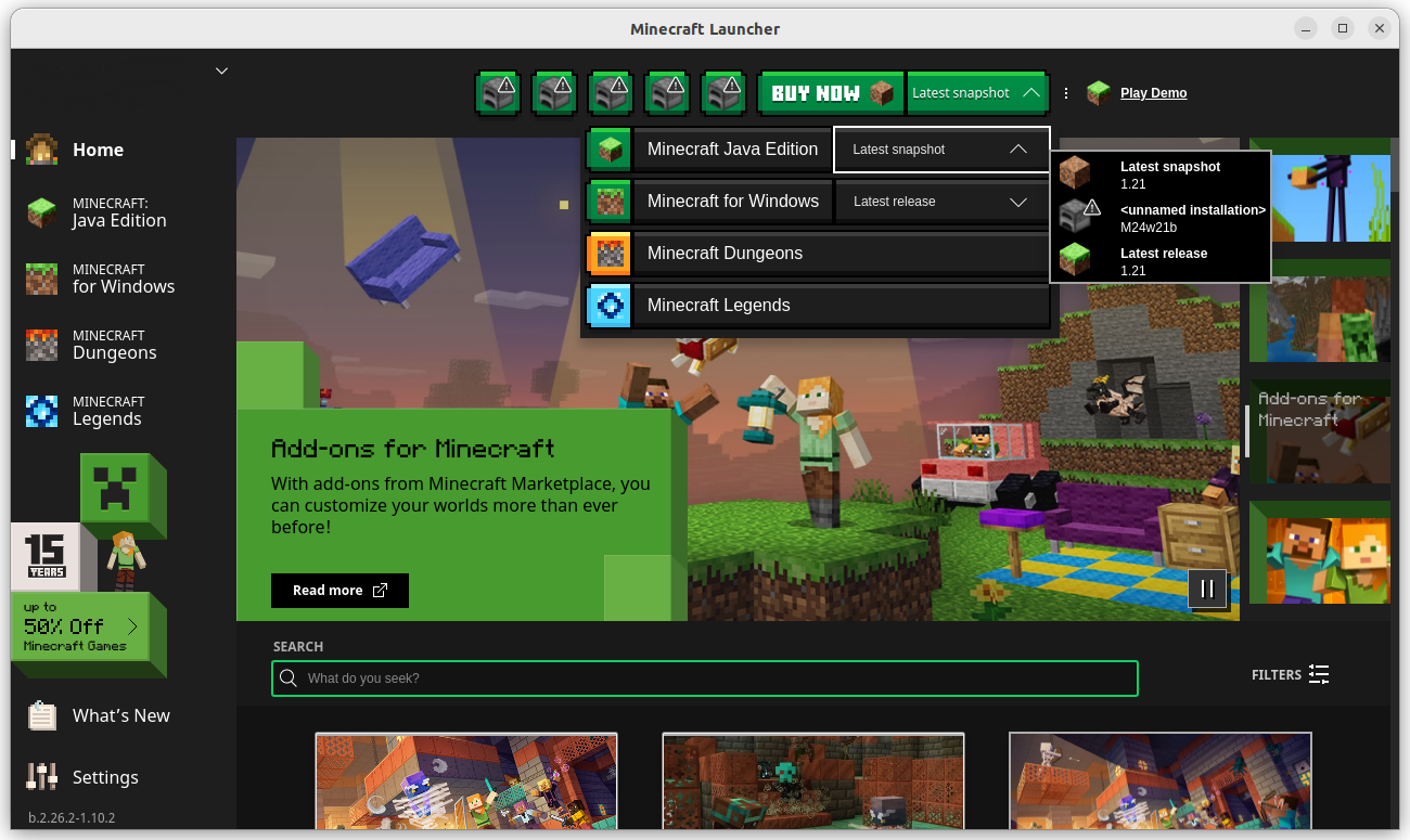 I haven't bought any Minecraft Version yet. And I am very hesitant to do so. After having to put in hours to get the previous launcher the Demo even started, woop the next update got forced onto me. I lost the setup with which 1.20.6 was finally up and running and ready to be tested out. And pouf all gone. So I have to do it all over again with 1.21, just to be able to test a Demo Version of the Game. Not fun.