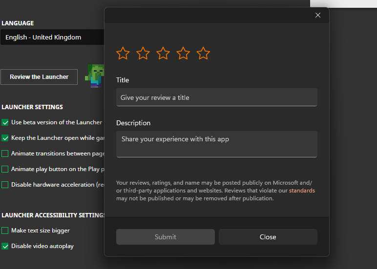 in minecraft launcher General setting the Review the launcher button doesn’t work