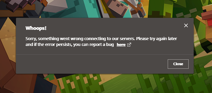 any time I try to launch Minecraft java edition a text box appears saying ‘whoops! sorry, something went wrong connecting to our servers. Please try again later and if the error persists, you can report the bug here’
