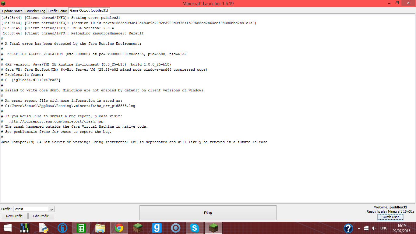 "If it immediately crashes, restart the launcher!"