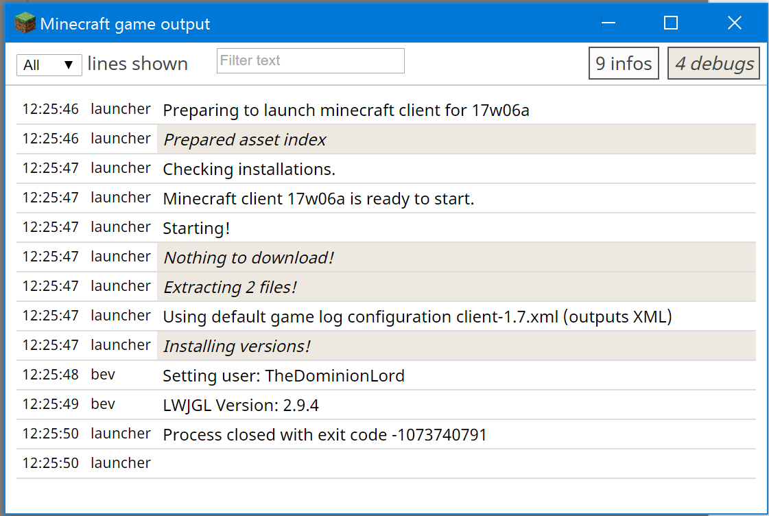 -The first picture is a screenshot of the output log from trying to play a snapshot, the second picture is a screenshot of the output log from trying to run 1.11.2 .