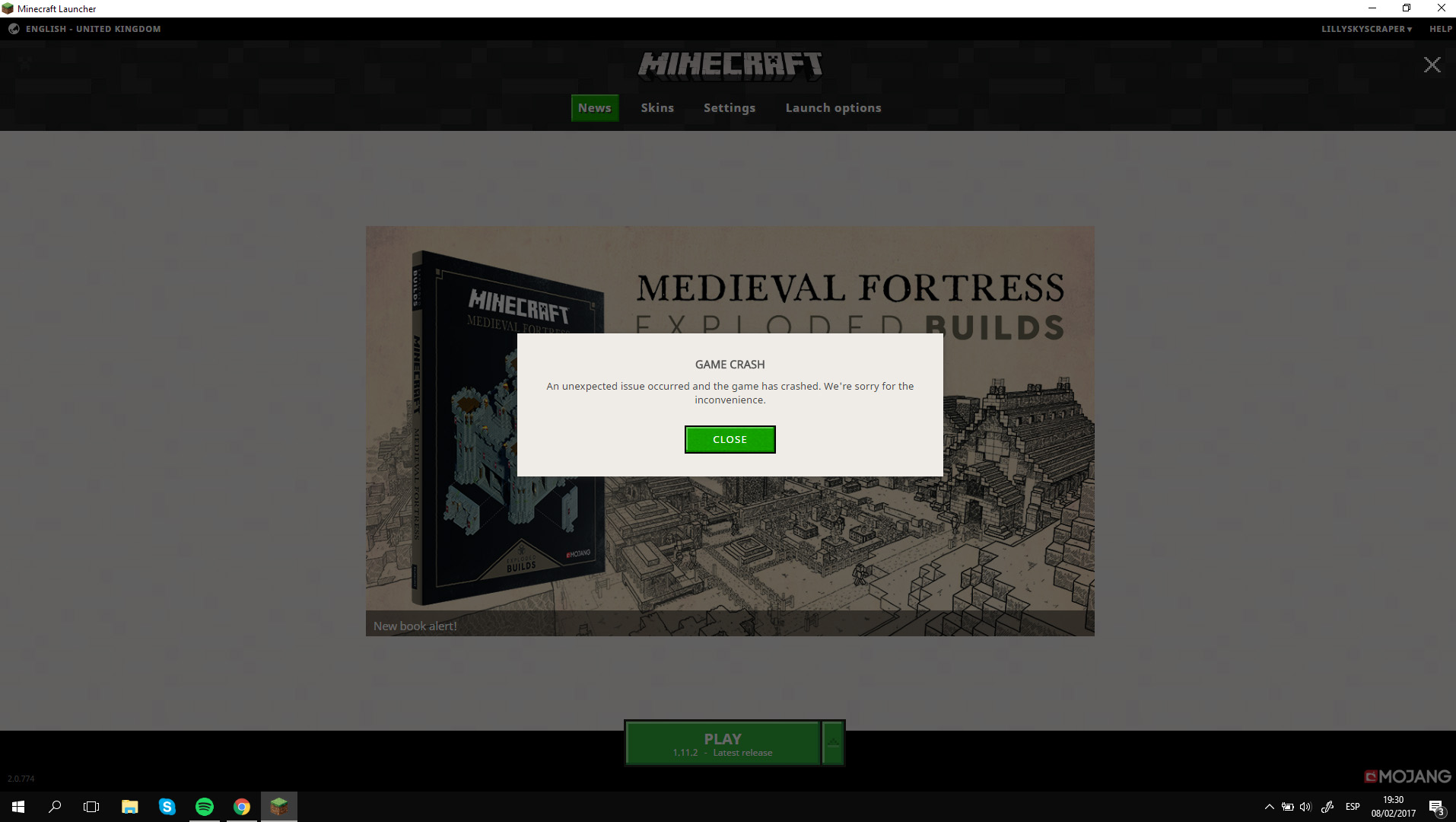 An unexpected error ocurred and the game is crashed. We are sorry for the inconvinience"