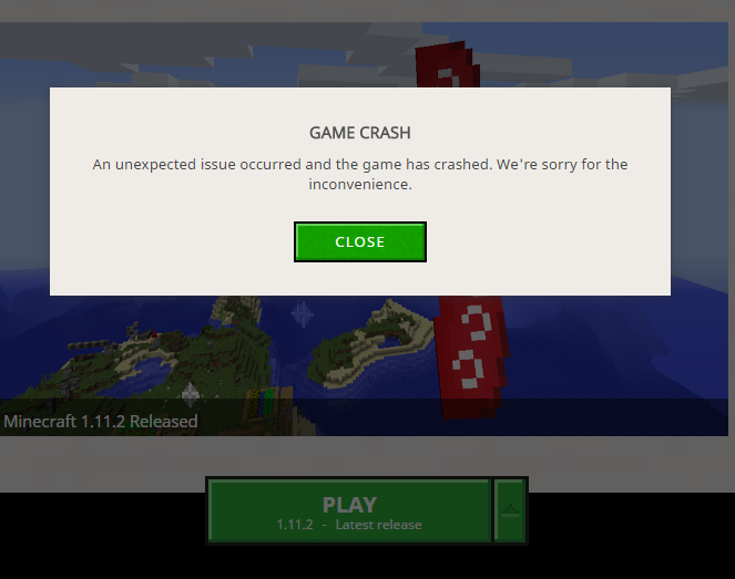After starting the game the launcher closes but no other window opens, few seconds later launcher opens again with info box saying "Game crash" (picture in attachments). I reinstalled both, java and minecraft, restarted PC but nothing changed. I tried different Minecraft versions but no solution yet.