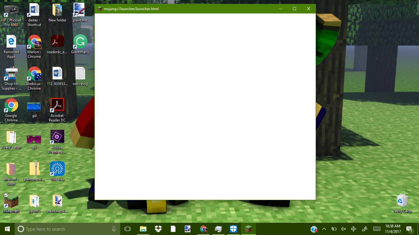 I clicked the minecraft app on my desktop, and then the minecraft launcher was just a white square with nothing on it. At the top of the box, instead of saying Minecraft Launcher, it said mojang://launcher/launcher.html. I don't know what kind of computer mine is but i do know that it is windows 10 or higher. This worked yesterday fine, I haven't changed anything and now it doesn't. I made sure that I'm not running windows XP or vista, and still nothing. In case this helps, my username is strebicus.