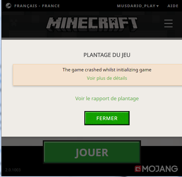 When i start the game via the laucher the laucher reboots with a message saying "The game crashed whilst initializing game" And i can't see the crash report. Thank you for your time.
