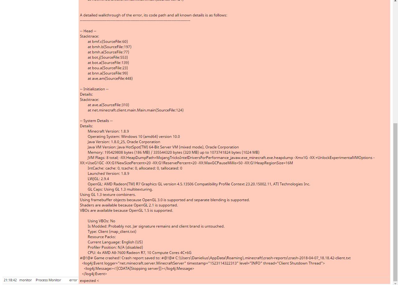 Crash report saved to: #@!@# C:\Users\Danielius\AppData\Roaming\.minecraft\crash-reports\crash-2018-04-07_18.18.42-client.txt