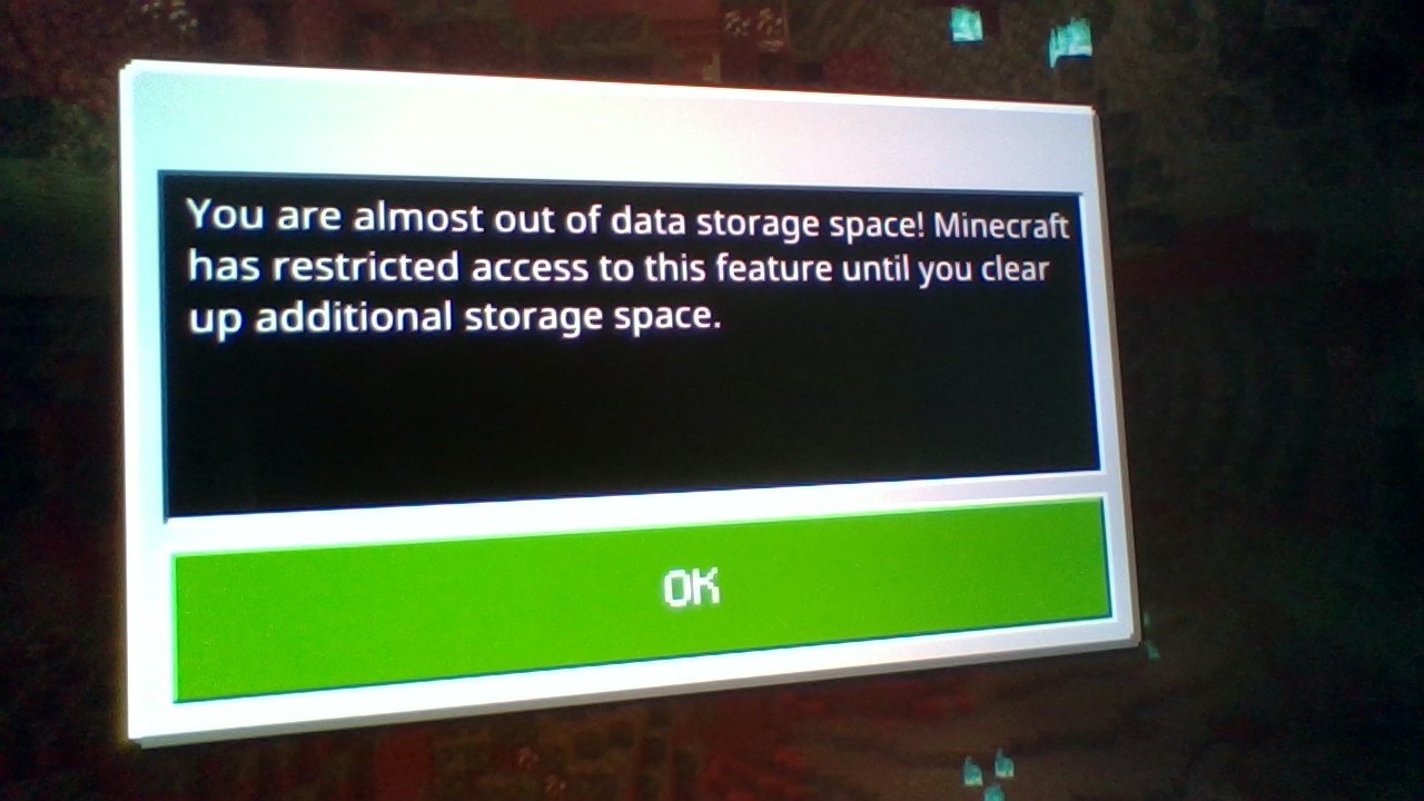 When i try and go onto marketplace or one of my worlds it comes up with a message which says,"you are almost out of data storage space! Minecraft has restricted access to this feature until you clear up additional storage space." i cant access anything so please try and fix this!!!