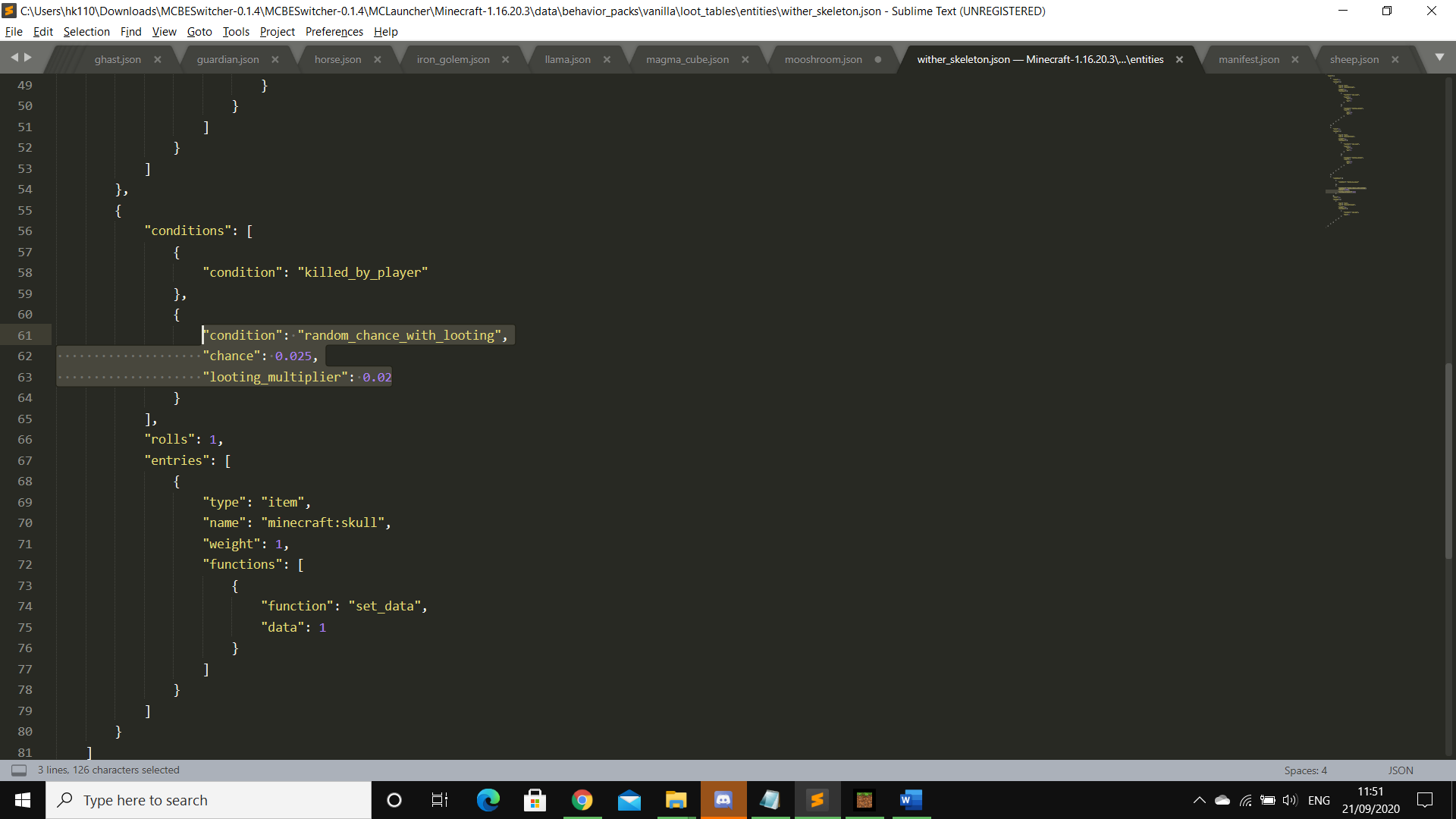 When the Looting enchantment is applied, the chance increases by 2% per level.