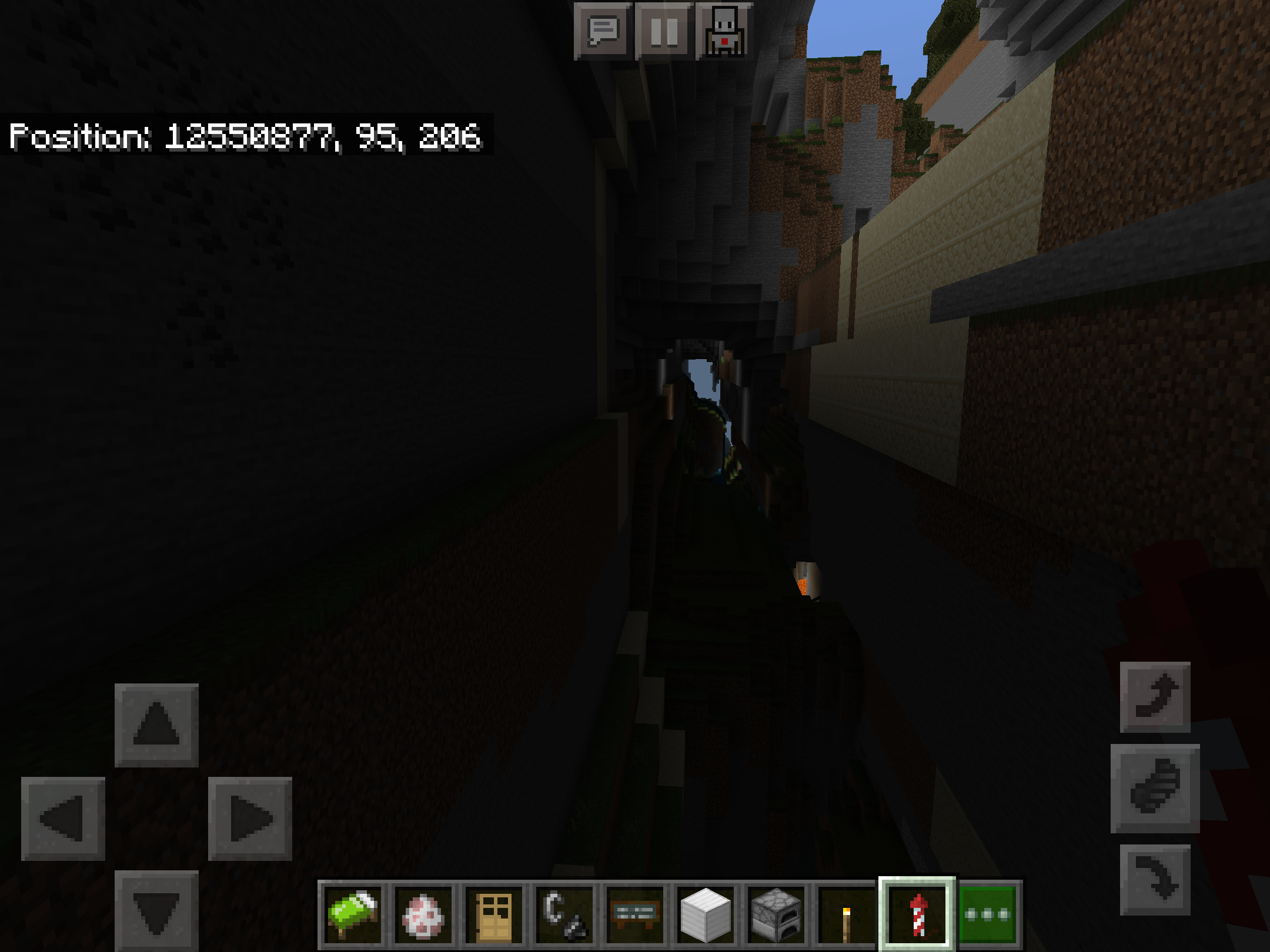 Far lands appears as a village with farming area on the bottom and desert and forest trees separate every 3-4 blocks, which was weird because if you look more closely, there is a 2D fence with no villagers/zombie villagers or animals. (Note: Entities fall down the world so that’s why there is no entities at the Far Lands.) Also, you can fall down trough the blocks and when you go to a cave, it enters spectator mode and back into survival/creative/adventure mode and into the void.