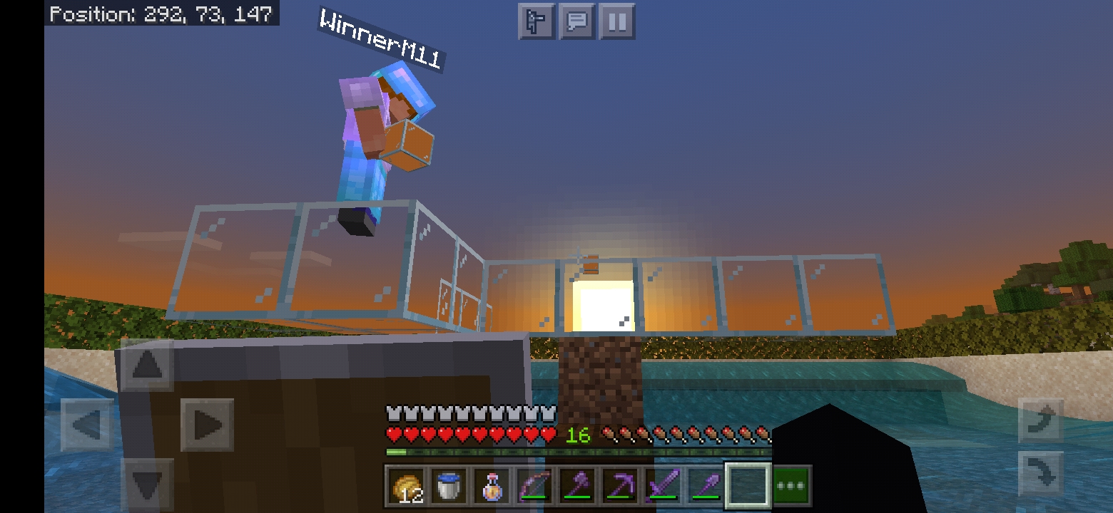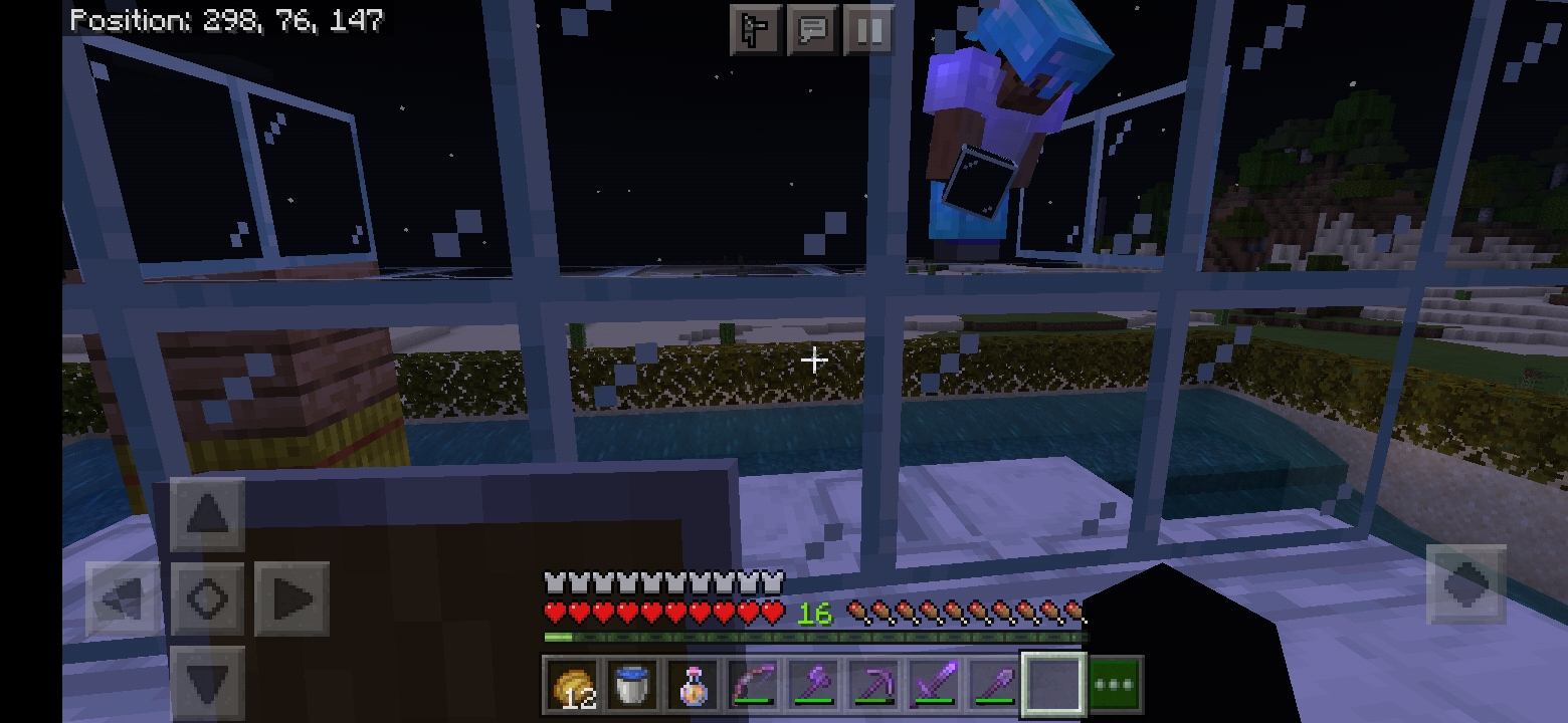 Water, leaves, and players do not render when viewed throught the "glass" item when it is thrown on the ground or held in another player's hand. The glass also changes color to match the sky when viewing the sunset.