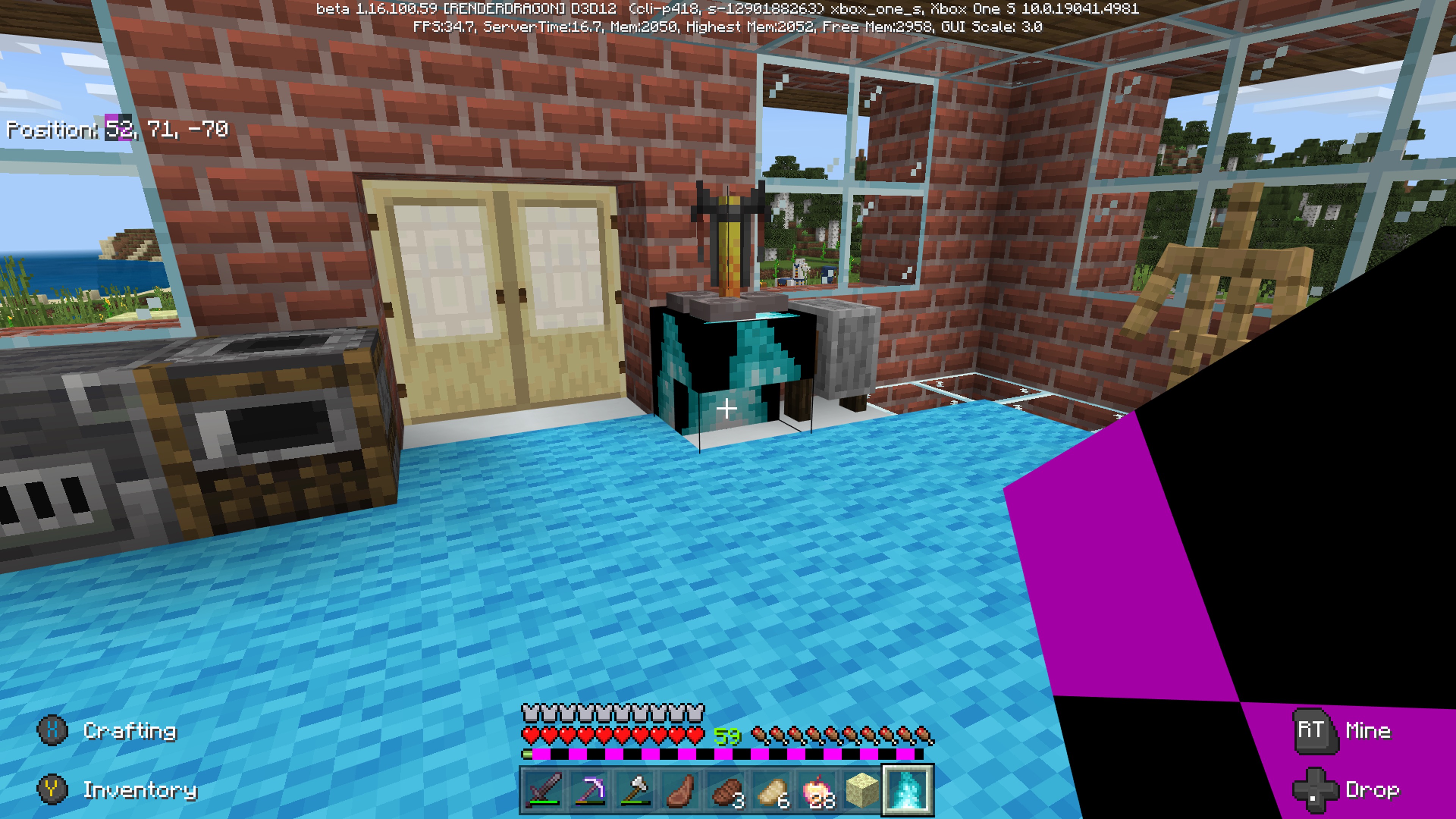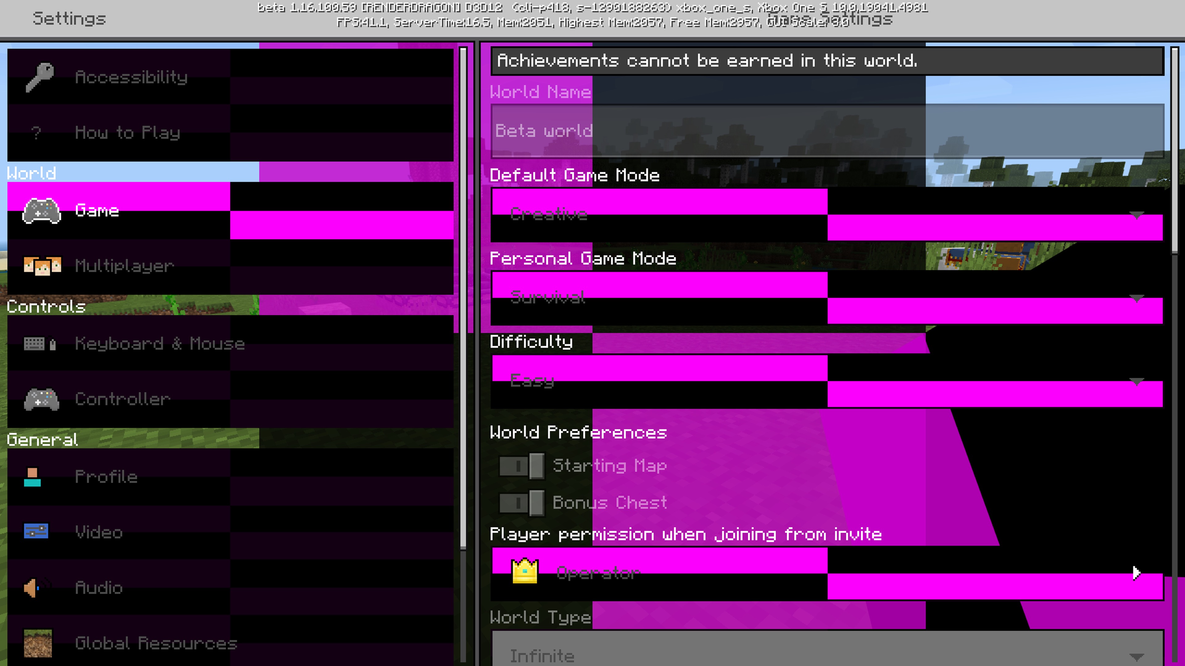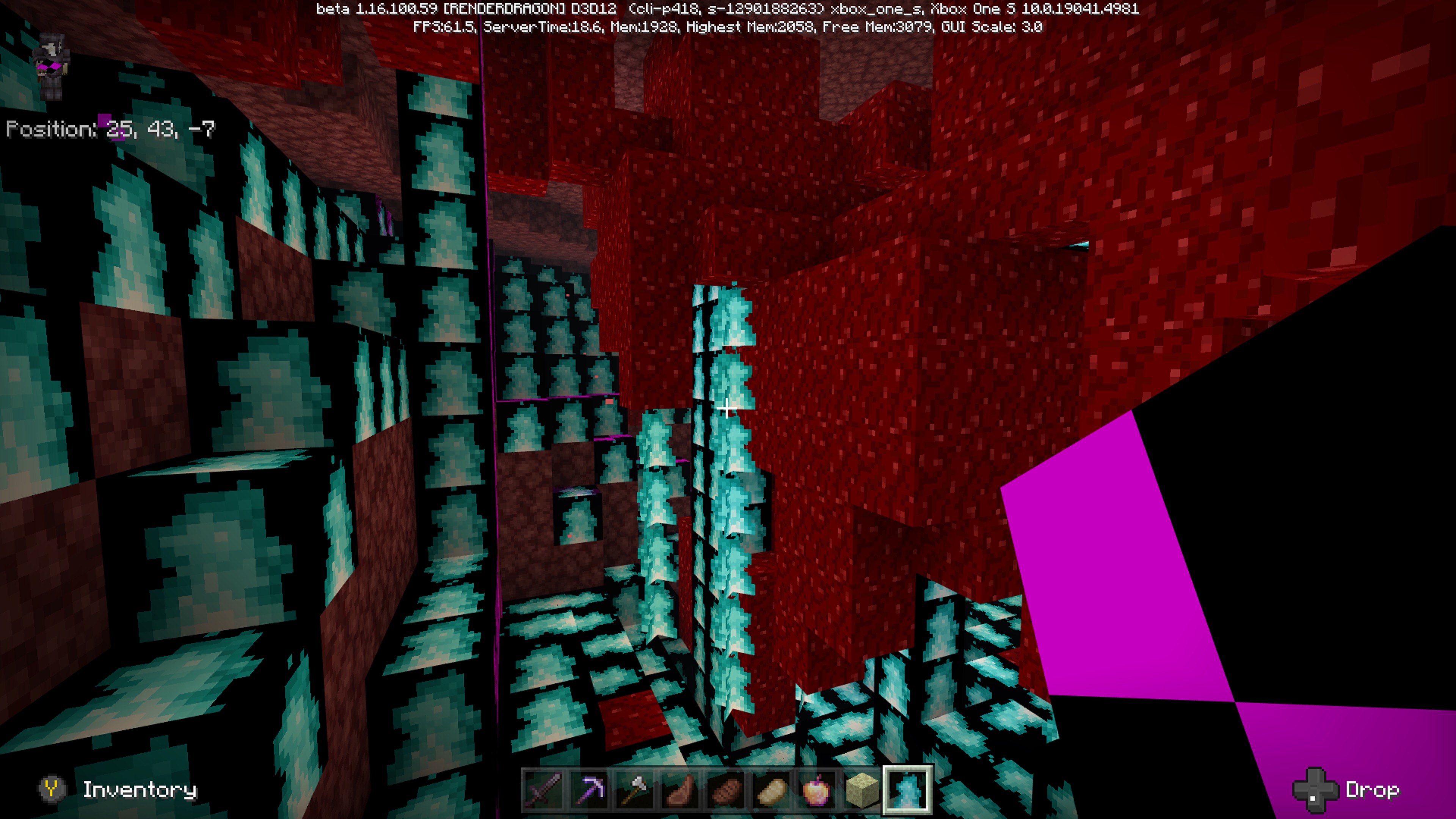 Main menu, setting menu have a black and purple pattern for missing textures this also includes in game. In game specific blocks for example soul lanterns, quarts stairs and netherack have a blue flame texture instead of their normal textures screenshots are provided