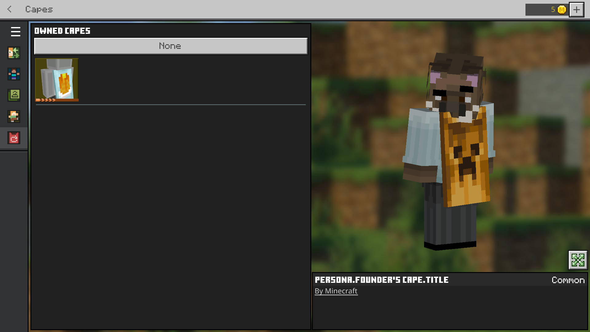 I just thought I'd let you know that my Founder's Cape on this PC Minecraft Bedrock, which I downloaded back when it first came out, has mysteriously disappeared..... Yep, it isn't listed in the list of capes I own in the Character Creator, and thus I can't remove it from my main character due to the fact I won't be able to put it back on. So, have fun with this bug... Rockatoa, Brickticks out!