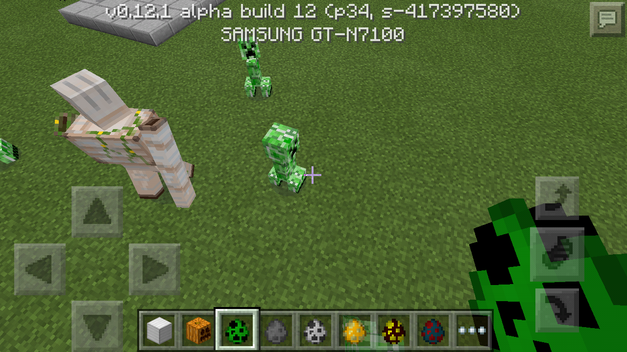 Iron golems are not angry towards creepers and do not attack them at all. My device is a Samsung Galaxy Note 2 GT-N7100.
