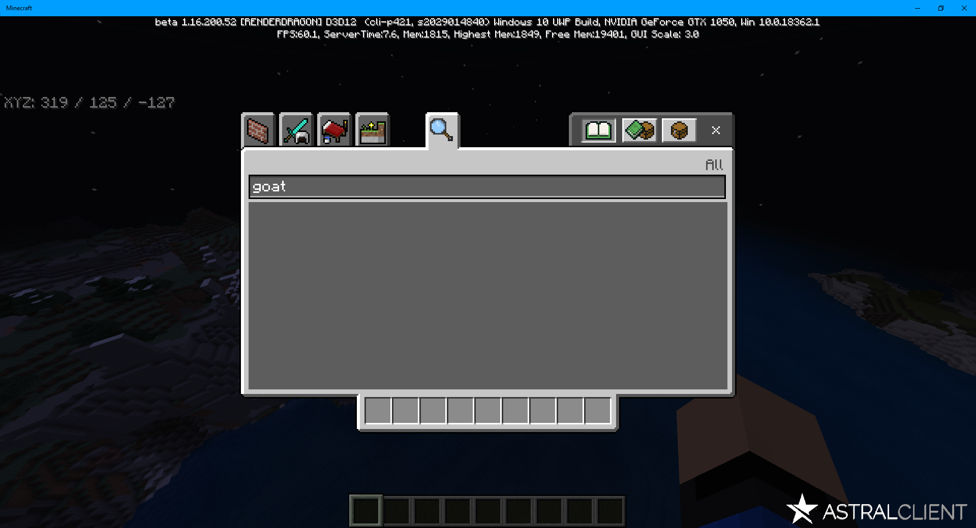 beta 1.16.200.52 [RENDERDRAGON] D3D12 (cli-p421, s2029014840) Windows 10 UWP Build, NVIDIA GeForce GTX 1050, Win 10.0.18362.1