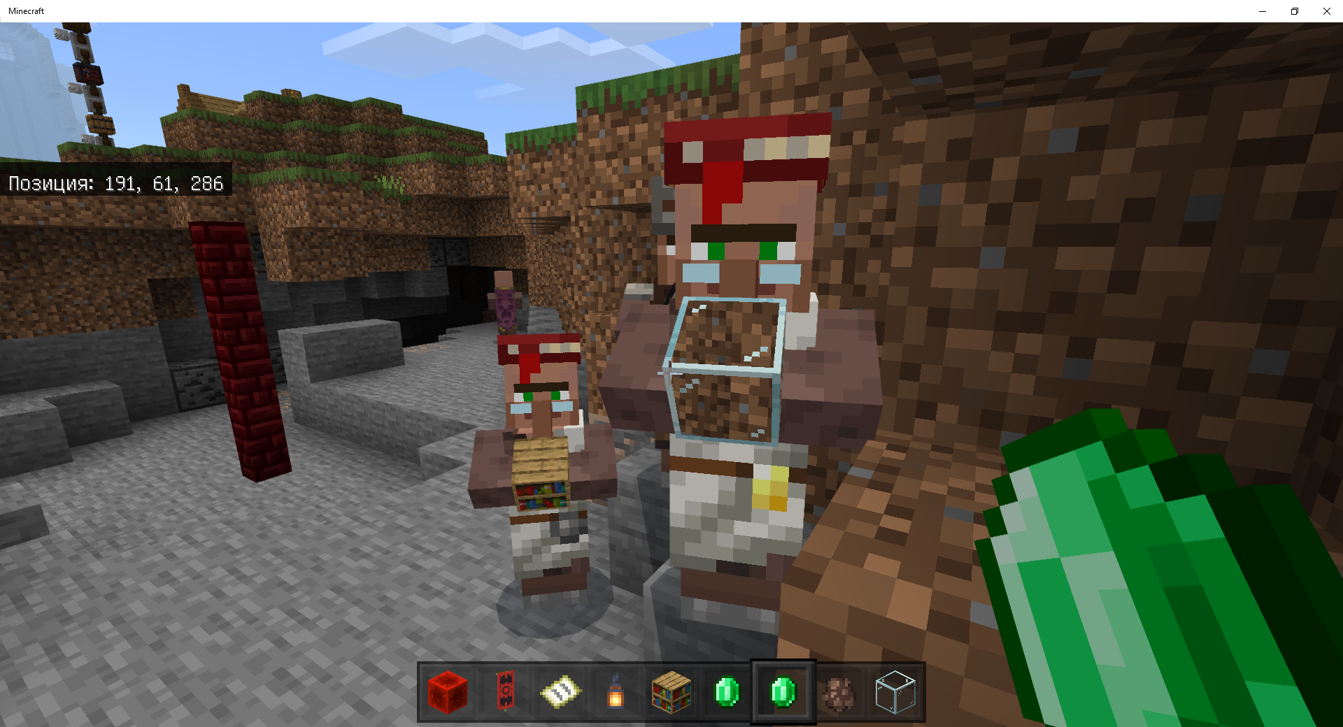when a villager is shown an emerald and he has glass in the auction, then when he holds it, then through the glass it will not be visible and other villagers too.