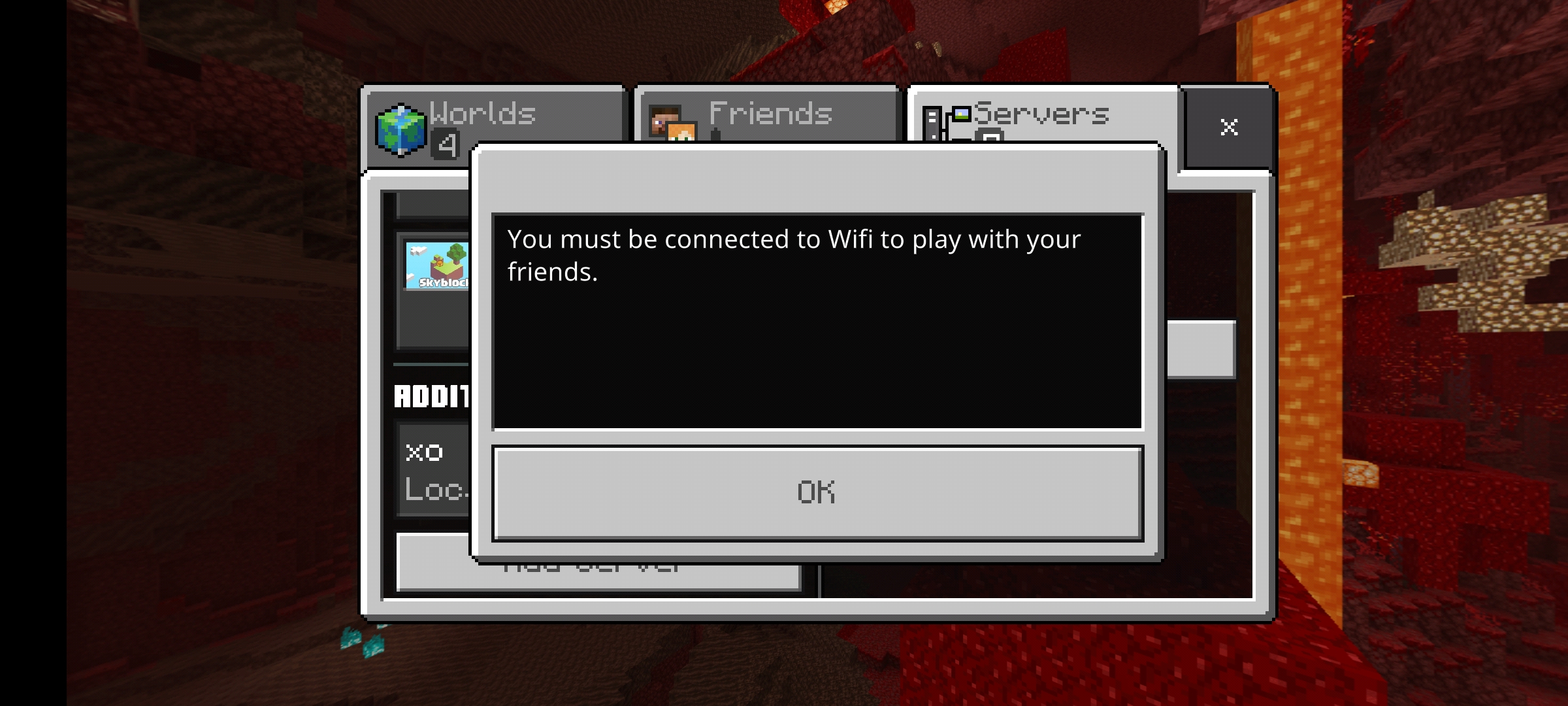 In new update 1.16.100 I'm facing issue when try to connect to a server it shows connect to wifi to play with your friend. I checked all my setting it is correct and use cellular data is on many pocket edition facing same issue please fix this issue release patch soon